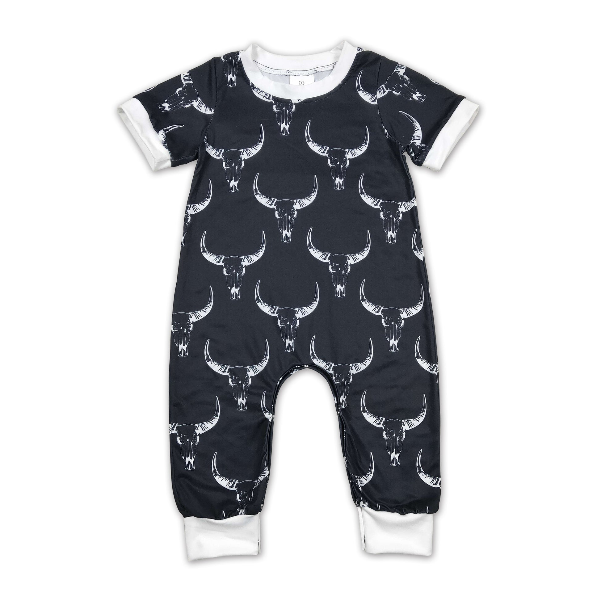 Black bull skull short sleeves baby kids romper