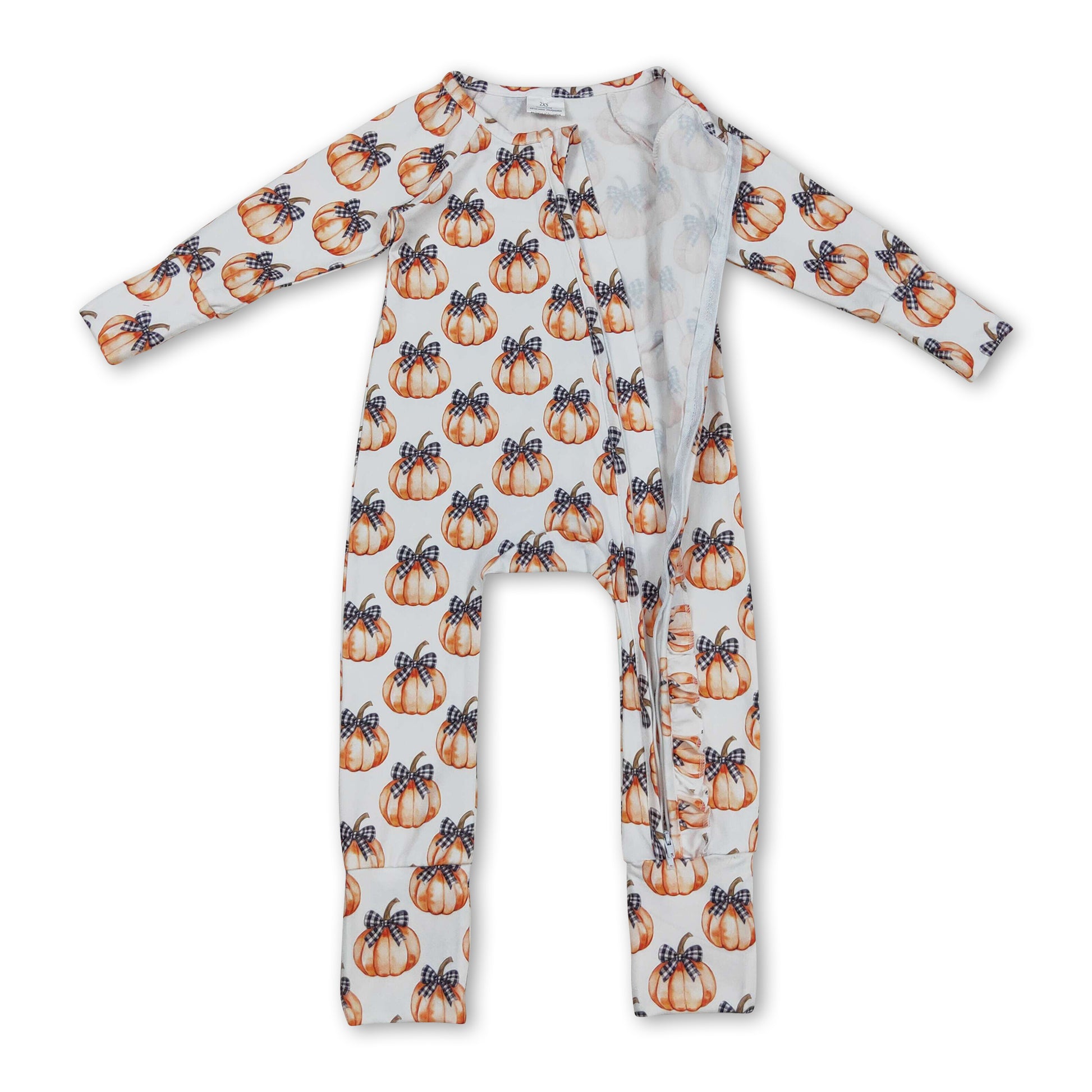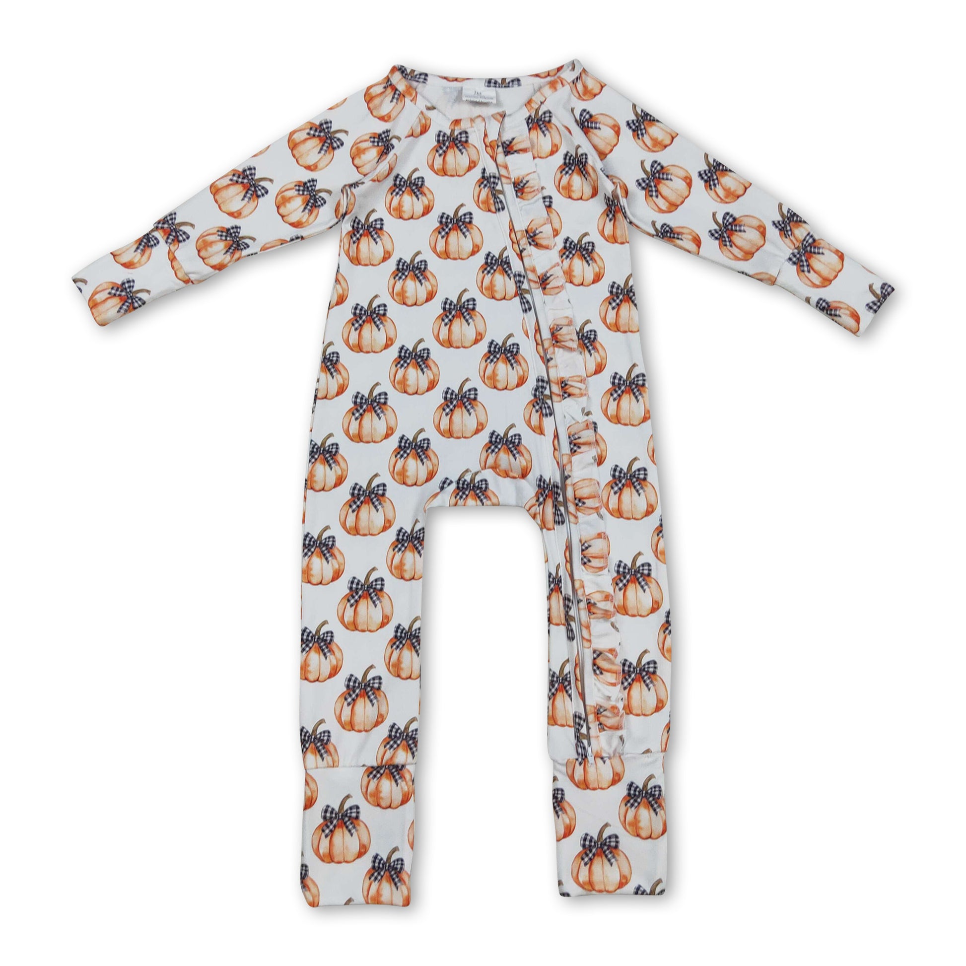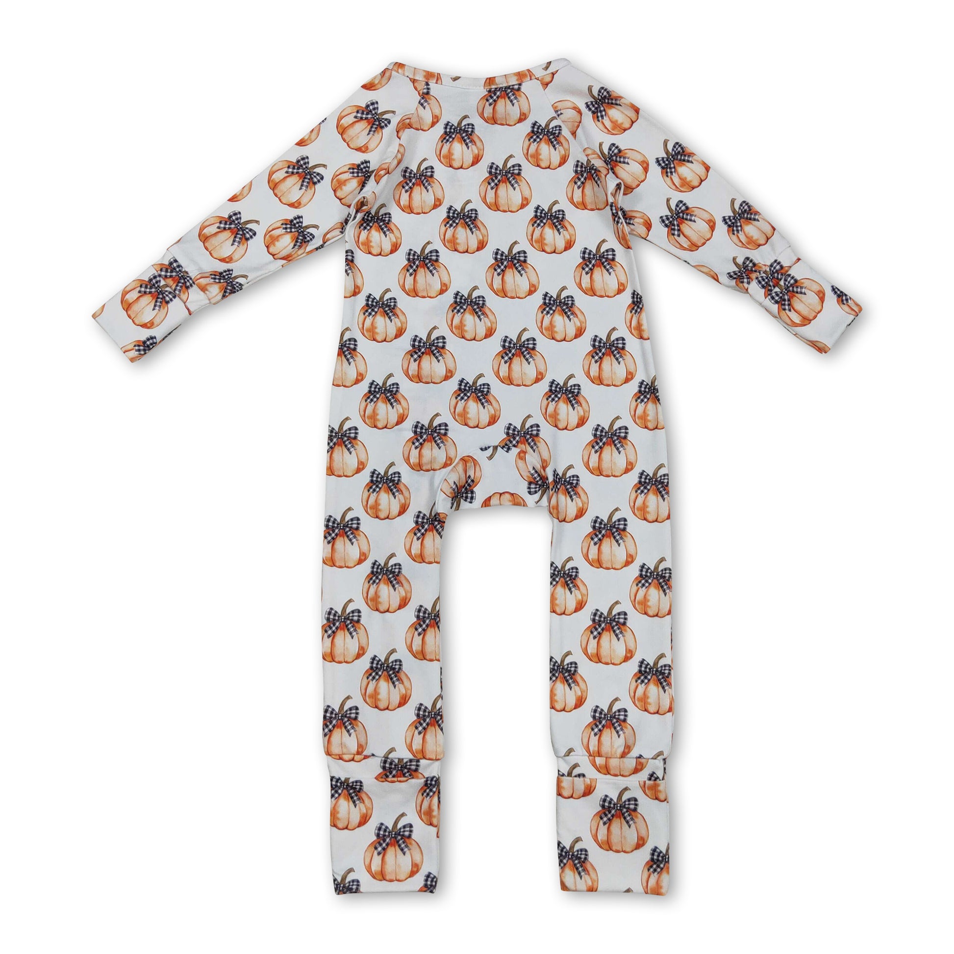 Black plaid bow pumpkin baby girls fall zipper romper