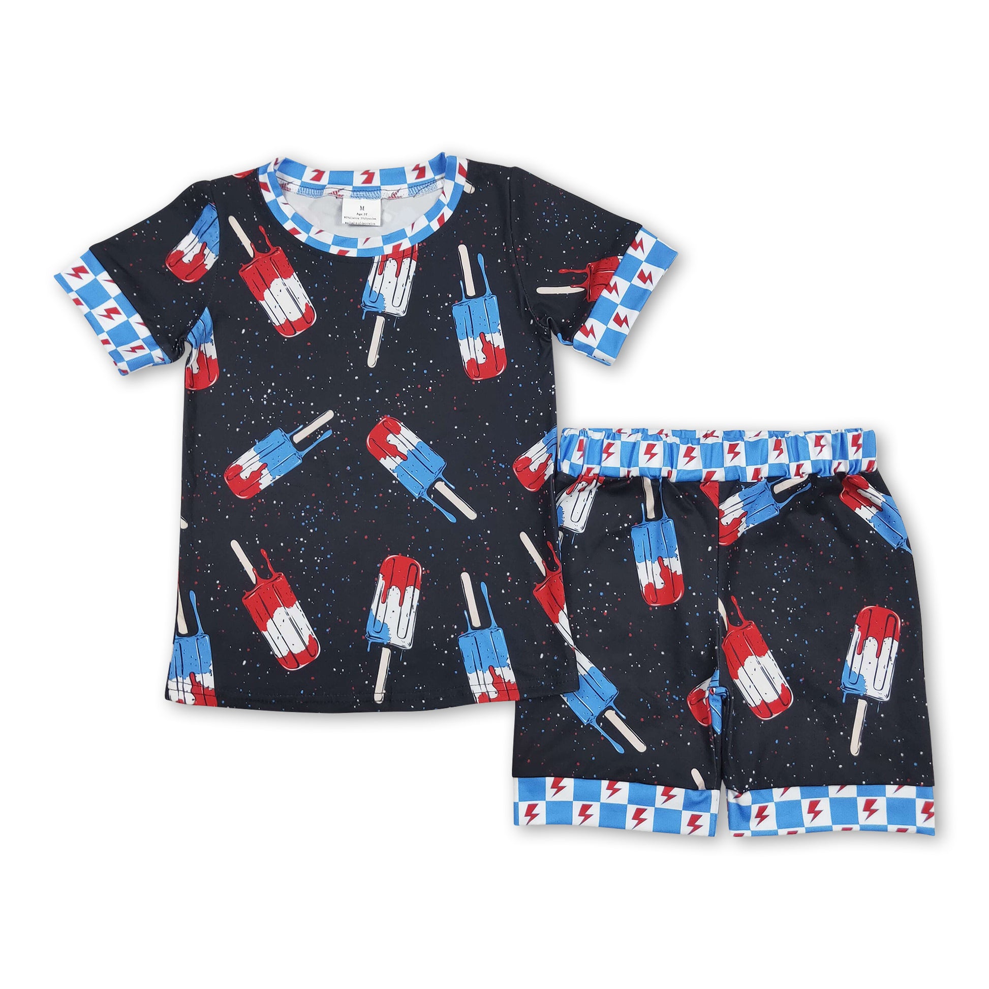 Black short sleeves popsicle kids boys 4th of july pajamas
