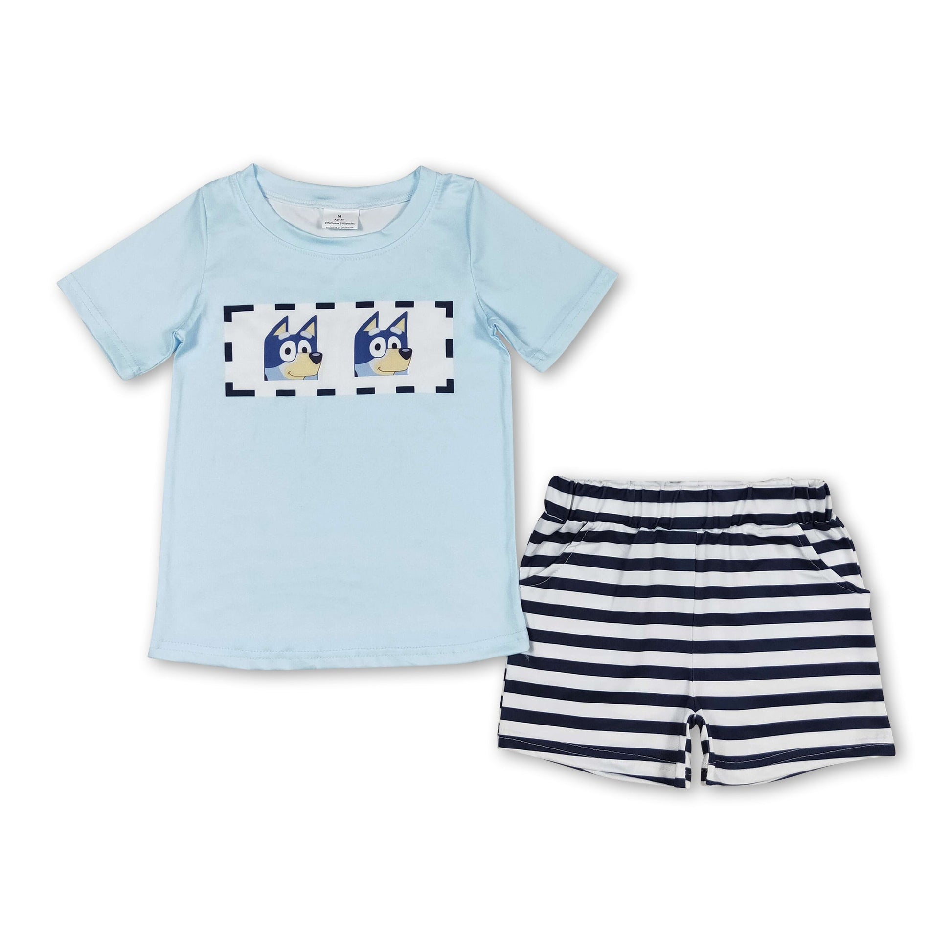 Blue dog short sleeves shirt stripe shorts boys clothes