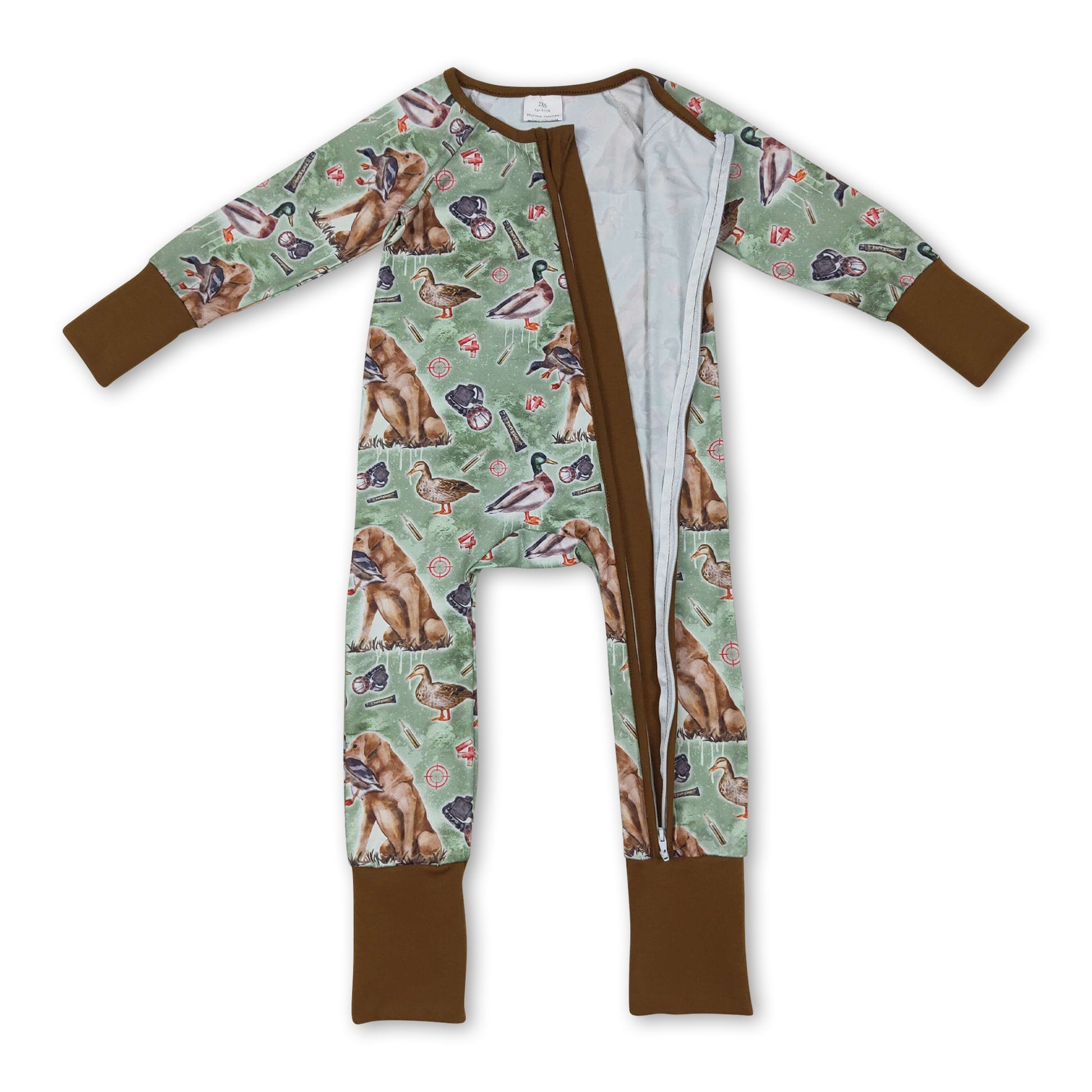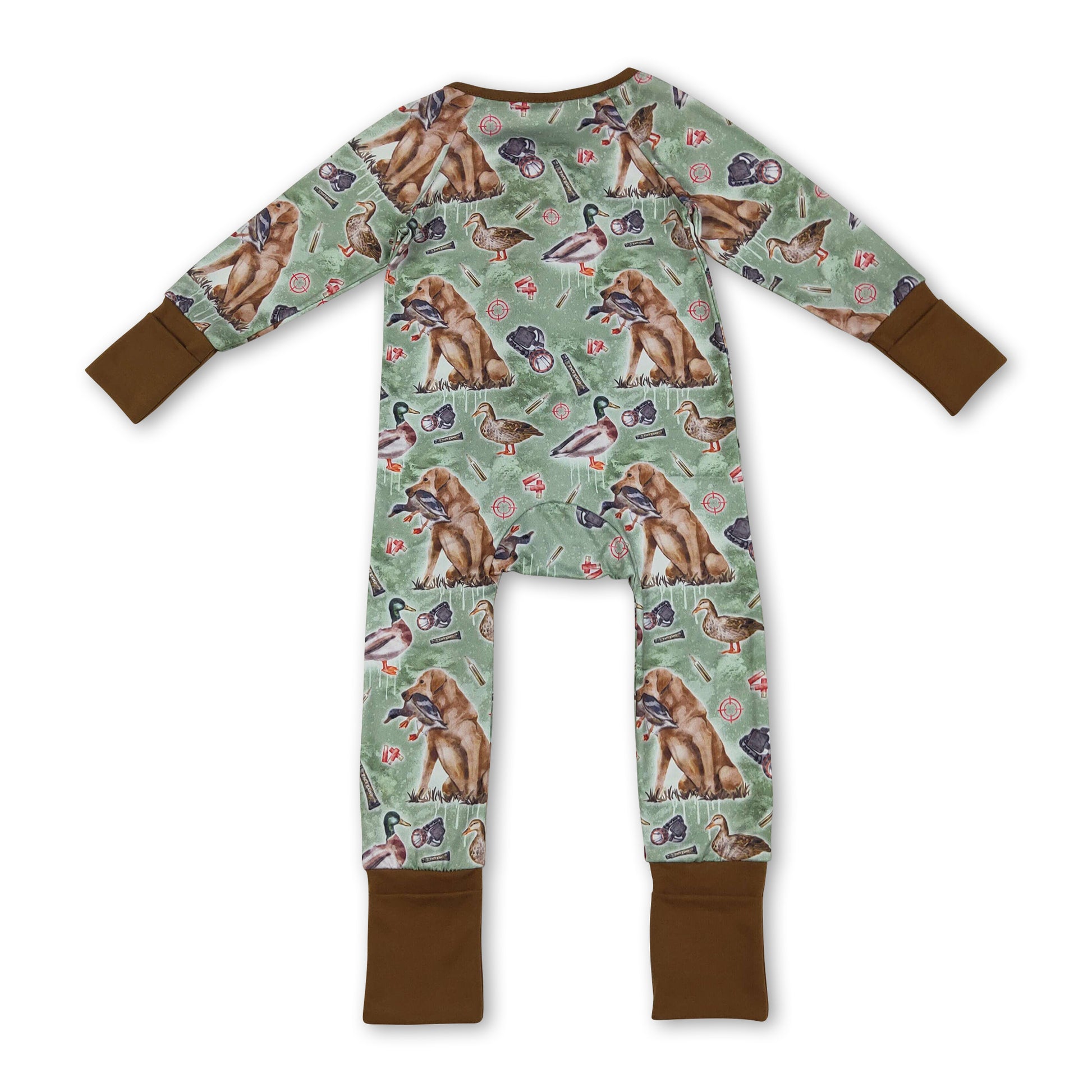 Brown long sleeves dog duck baby boy zipper romper