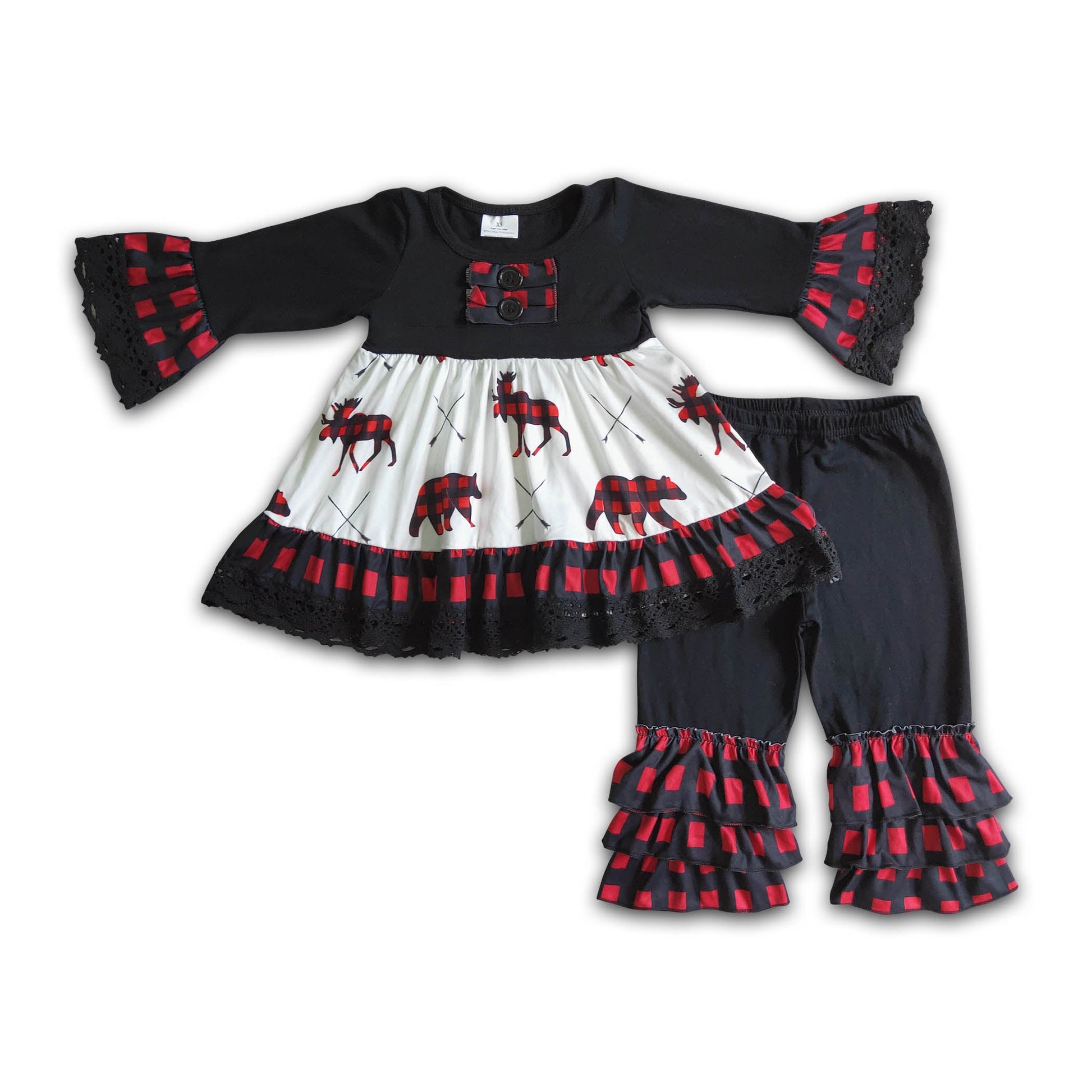 Buffalo reindeer bear tunic triple ruffle pants Christmas clothing