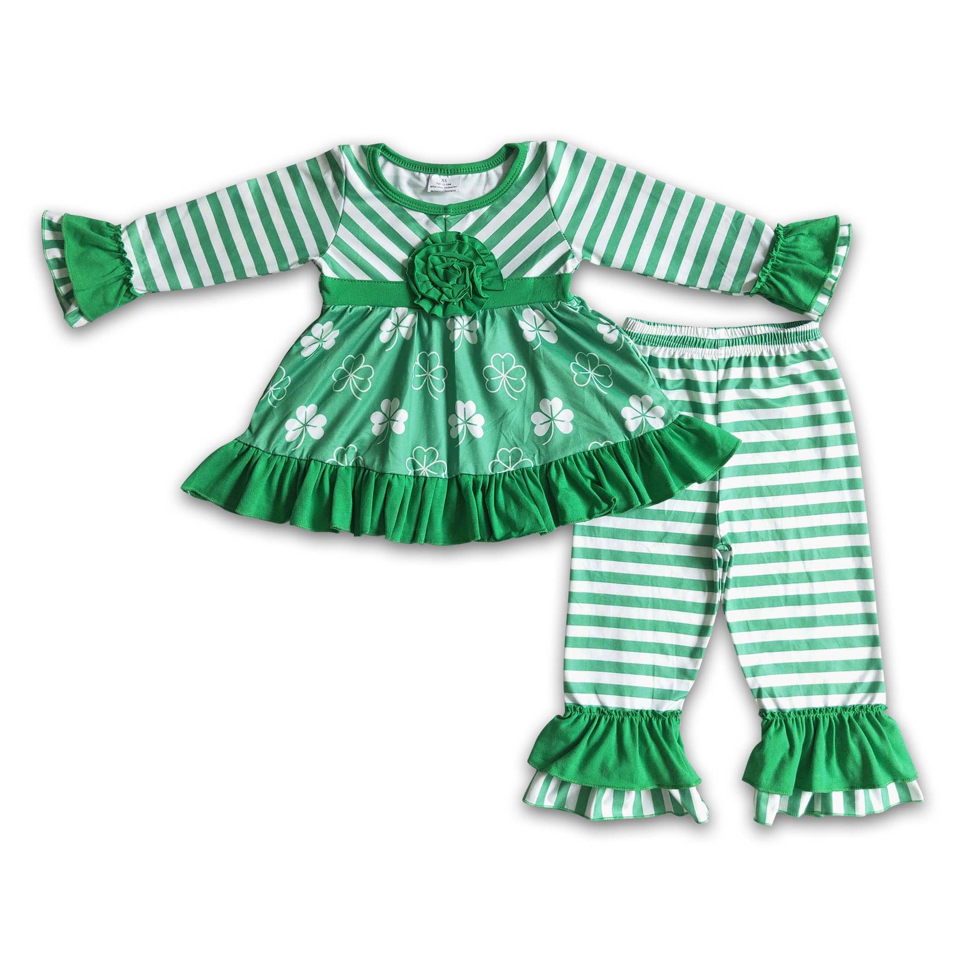 Clover tunic green stripe pants girls St Patrick's Day clothes