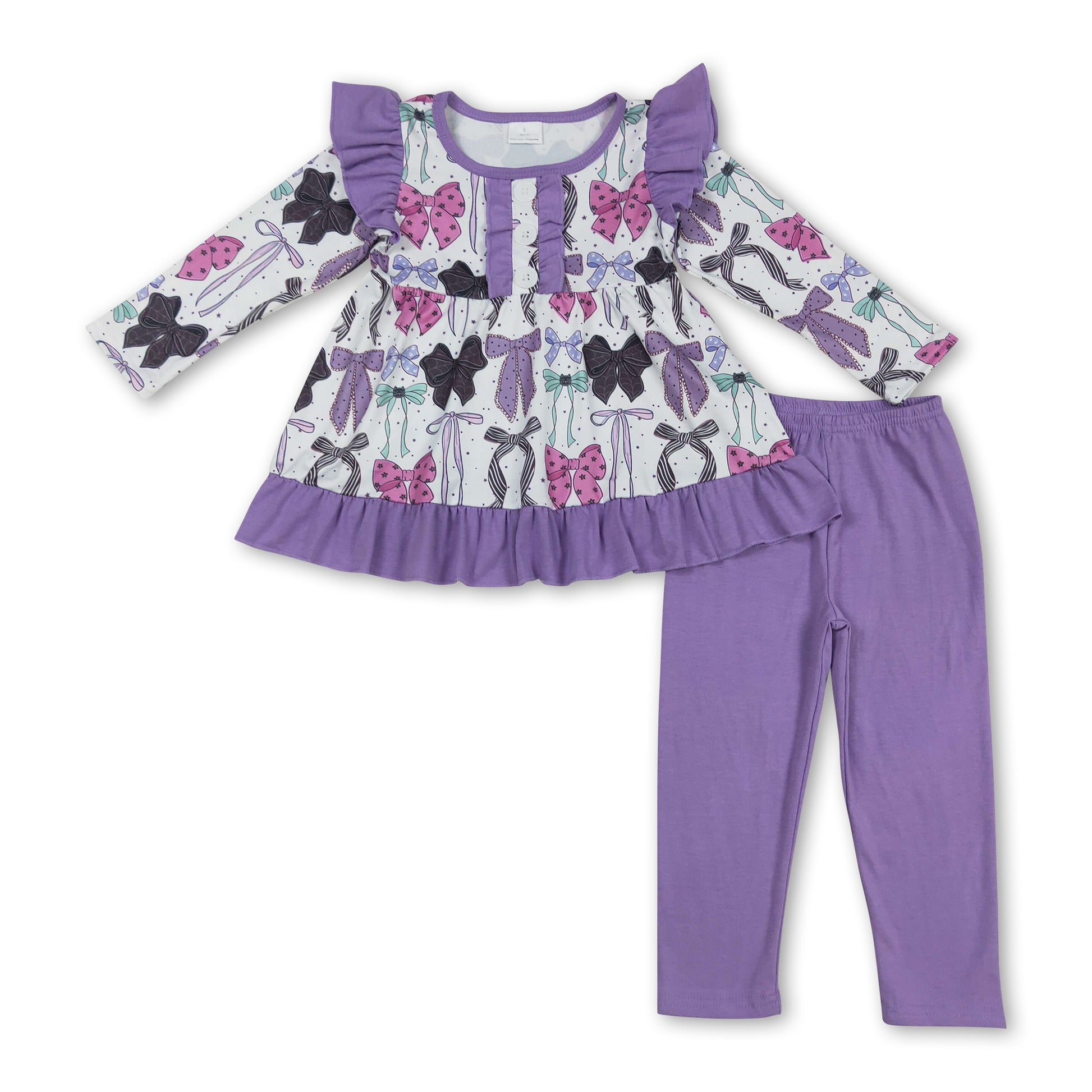 Colorful bows tunic purple leggings girls Halloween clothes