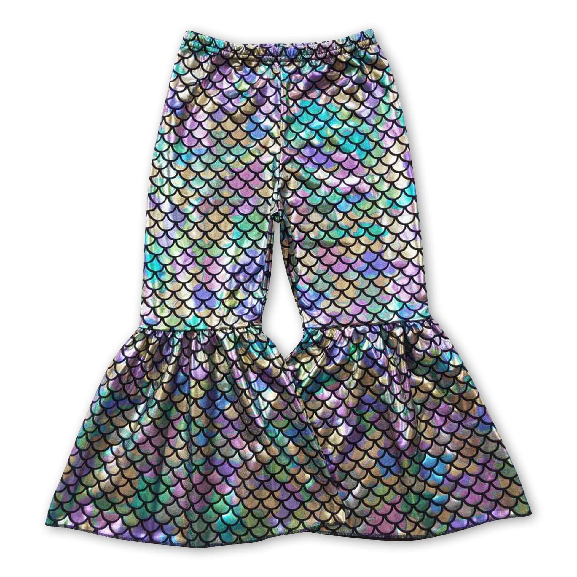 Colorful mermaid scale baby girls bell bottom pants