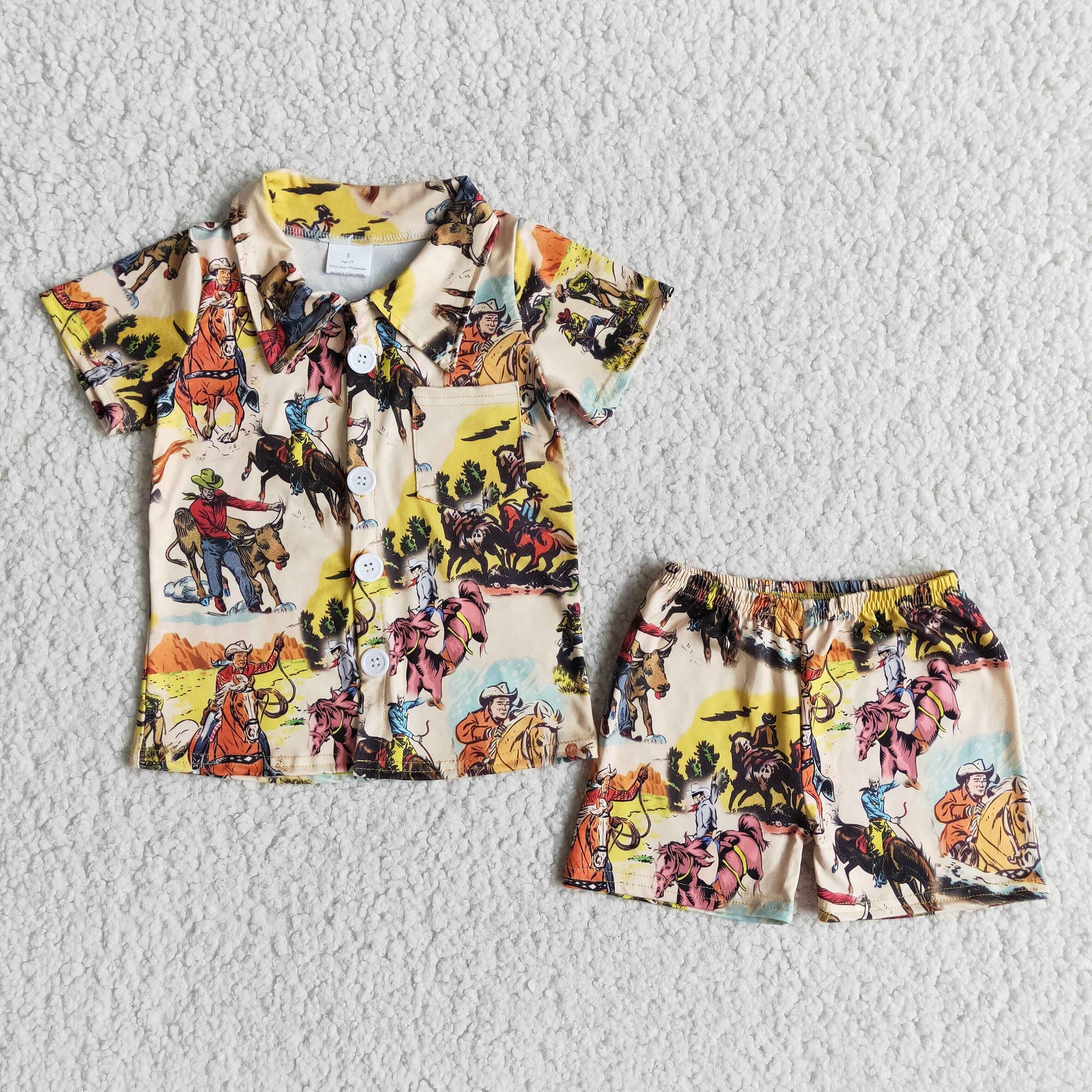 Cow boy horse print boy short sleeve shorts summer pajamas