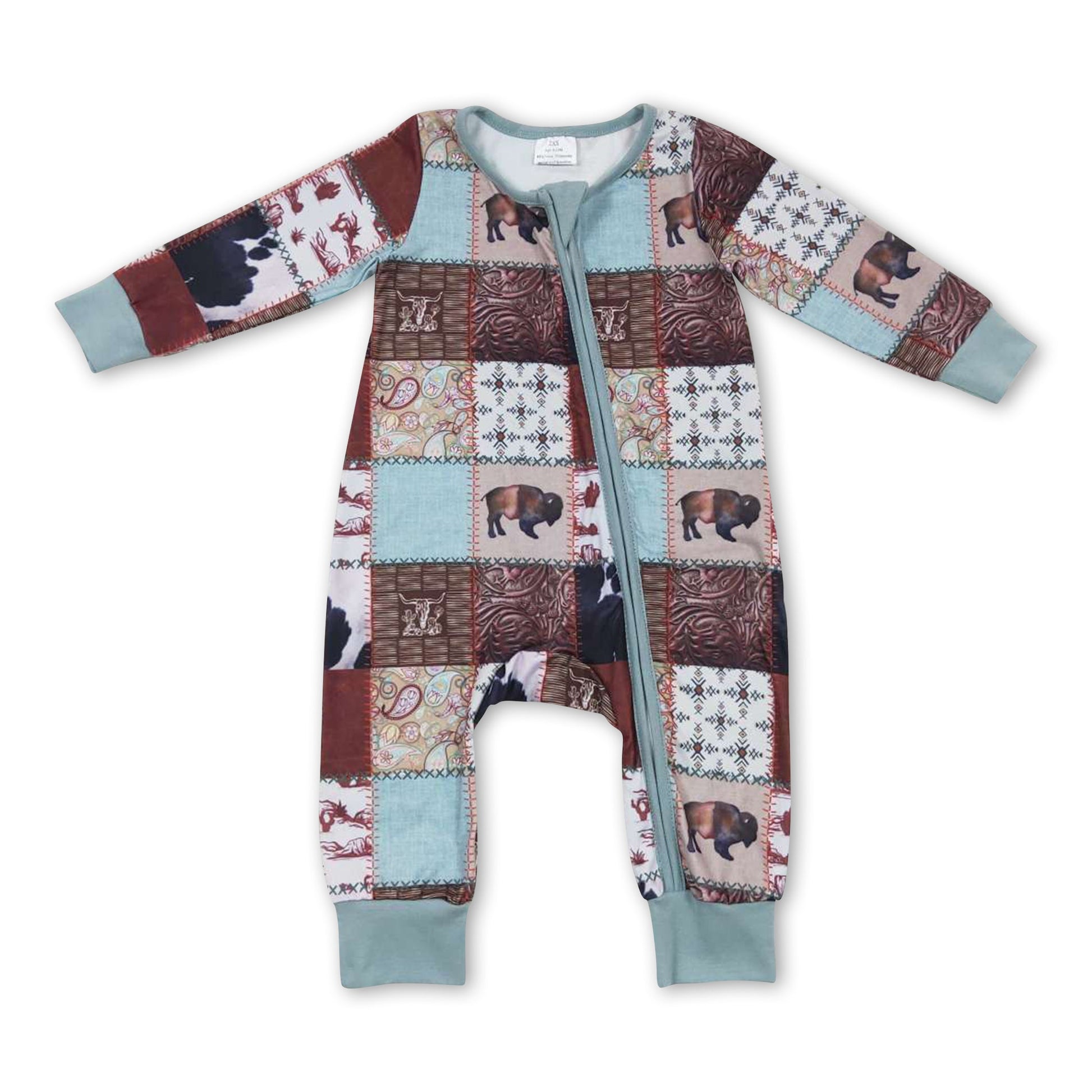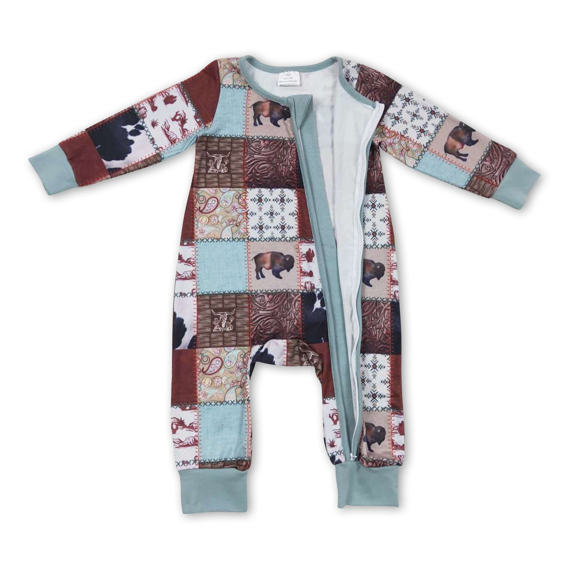 Cow cactus patchwork baby kids zipper romper