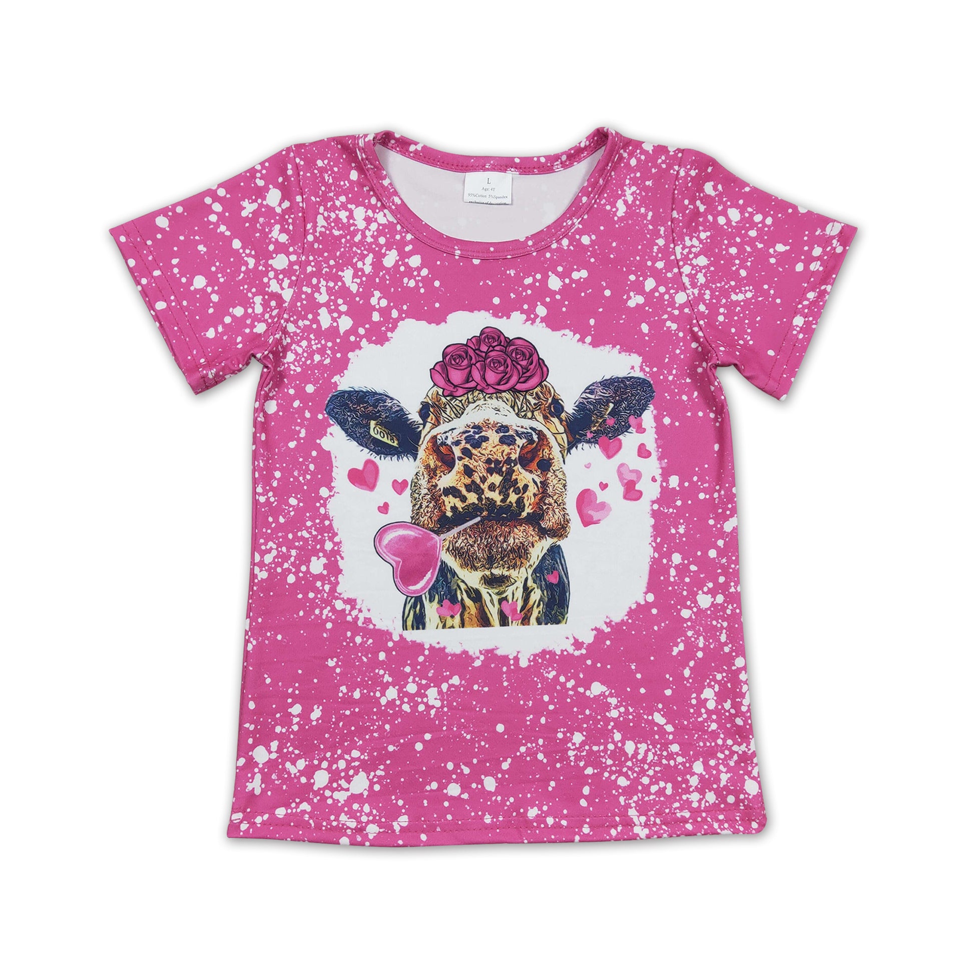 Cow flower heart kids girls valentine's shirt