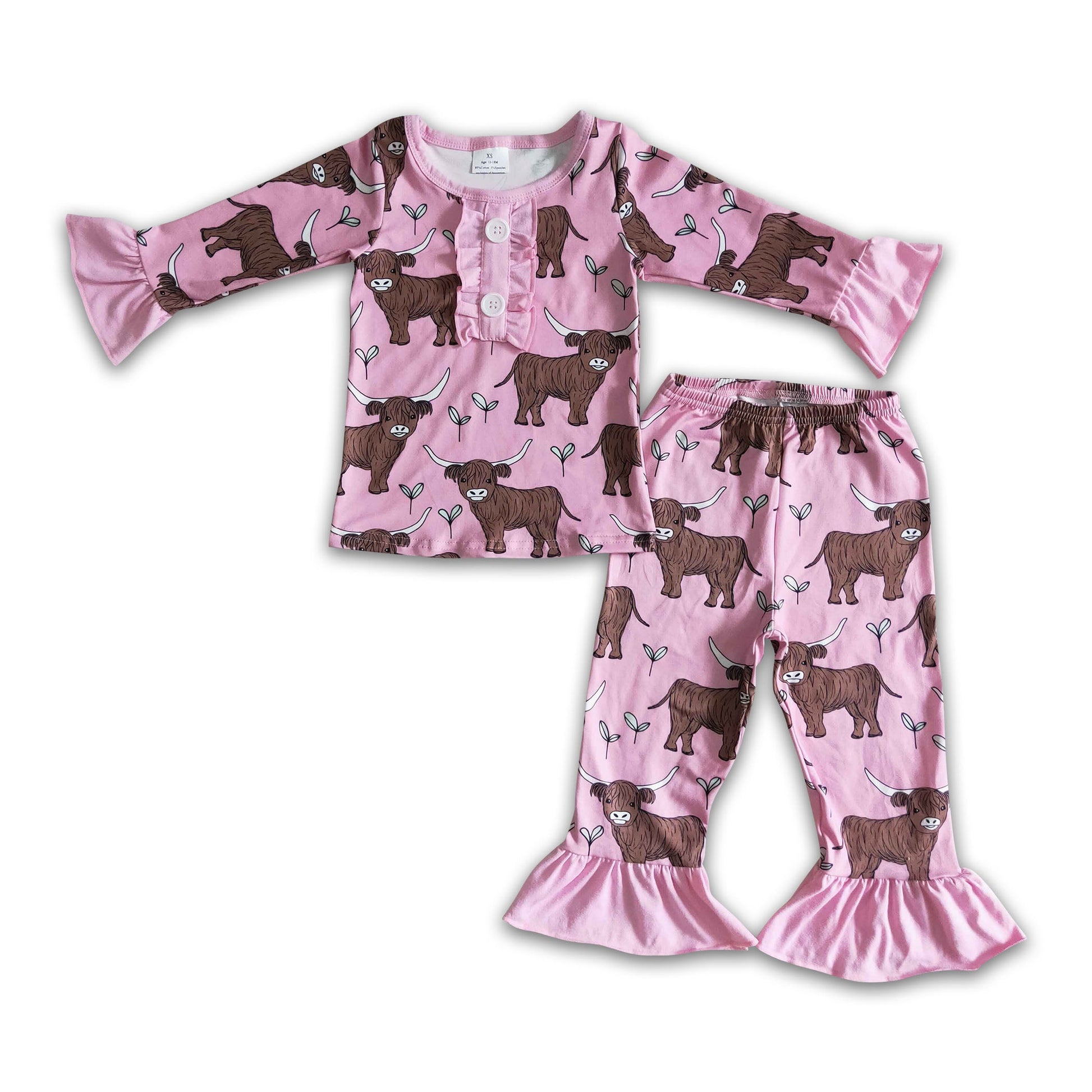 Cow print pink long sleeve pants girls pajamas
