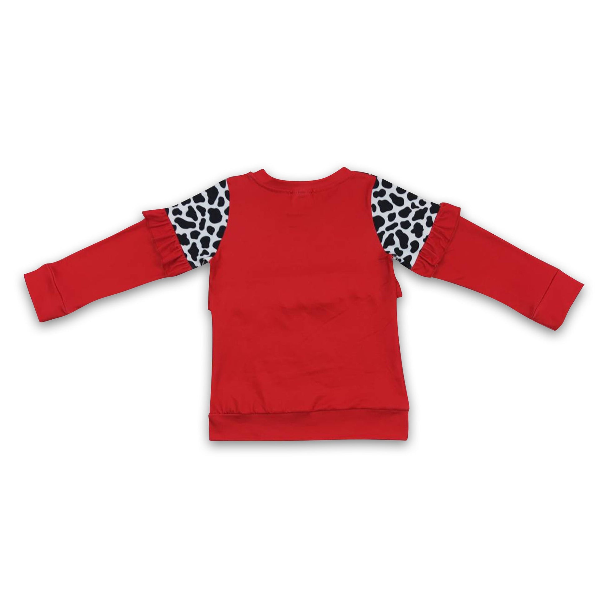 Cow print red long sleeves girls ruffle shirt