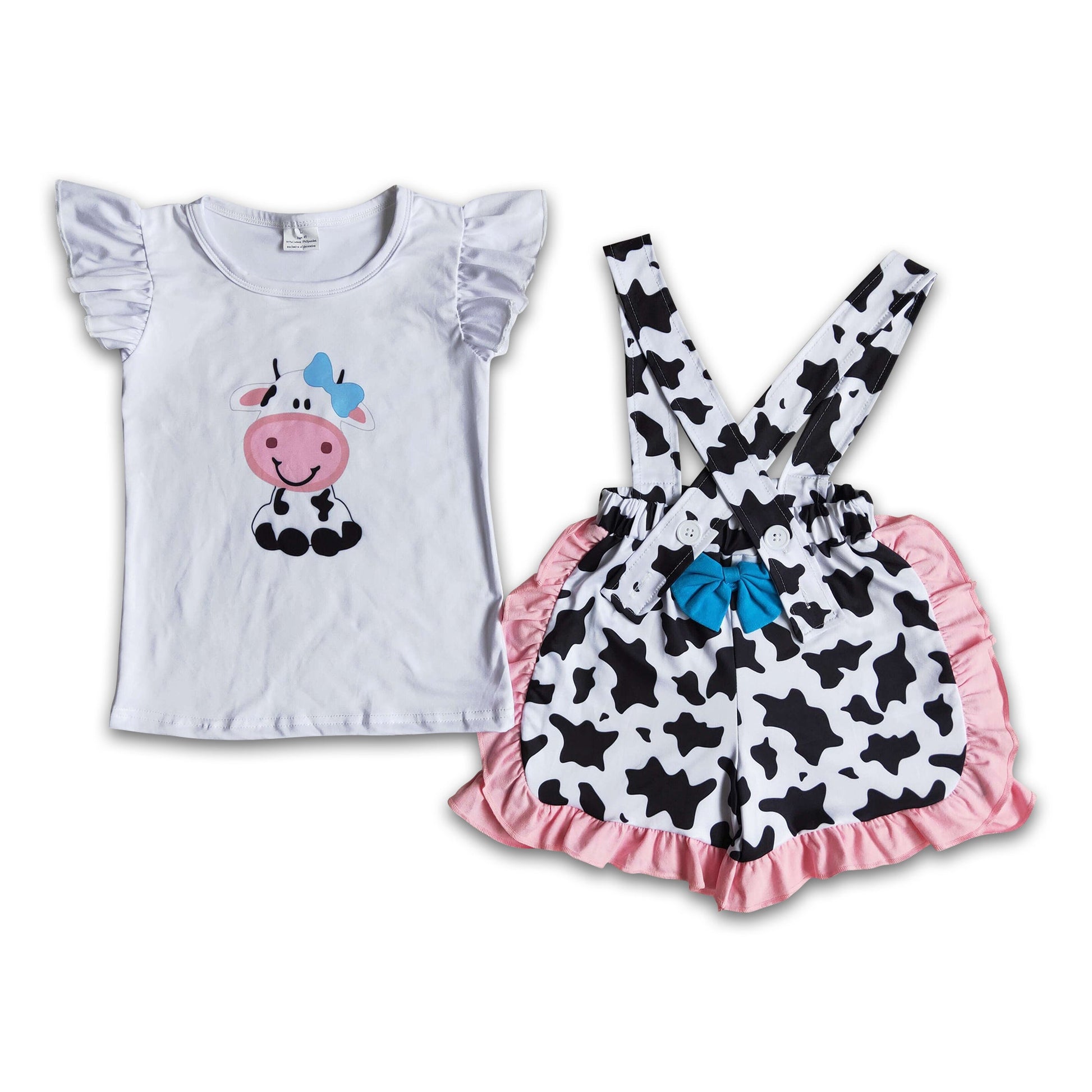 Cow print shirt suspender shorts girls clothing set