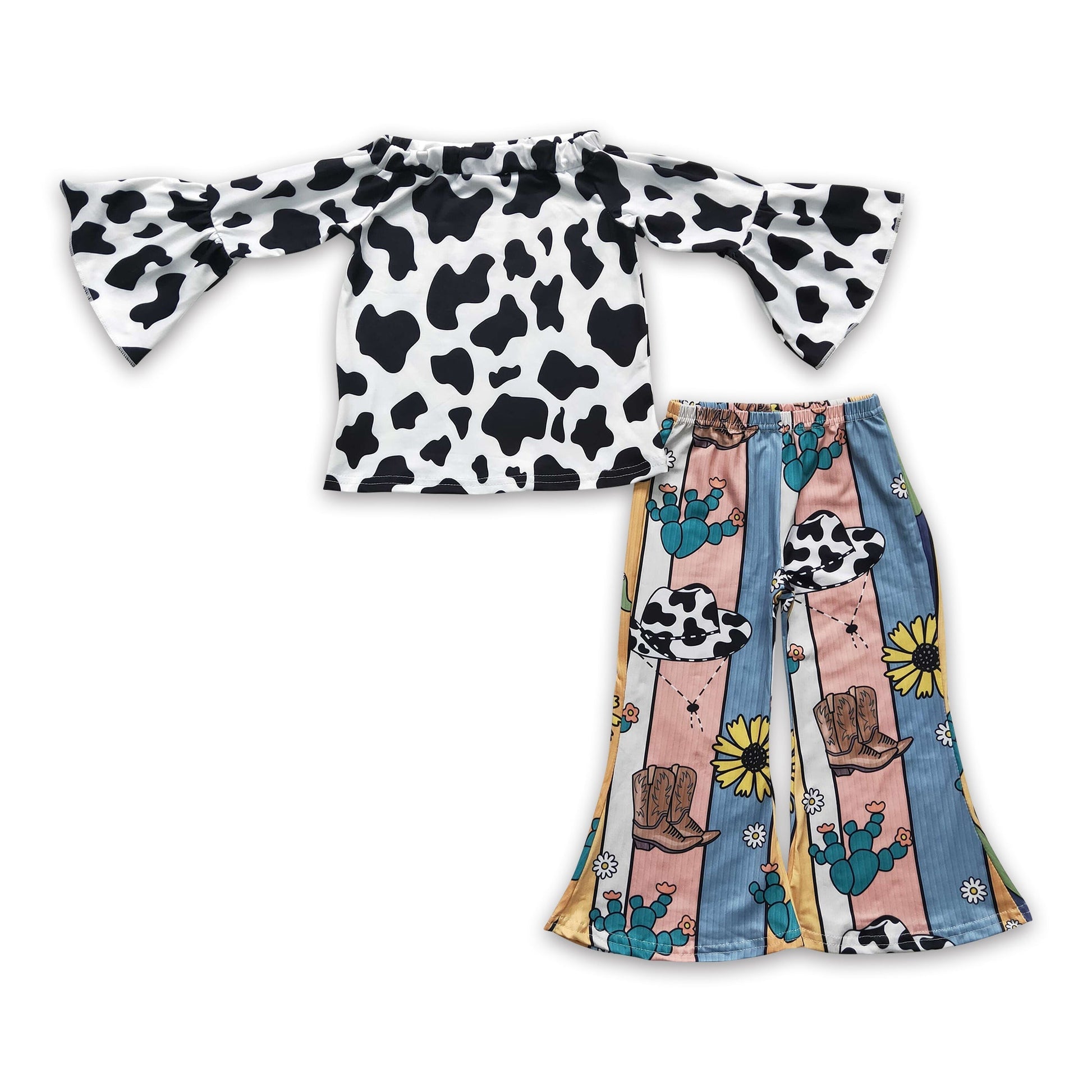 Cow print top hat boots cactus pants girls western clothing