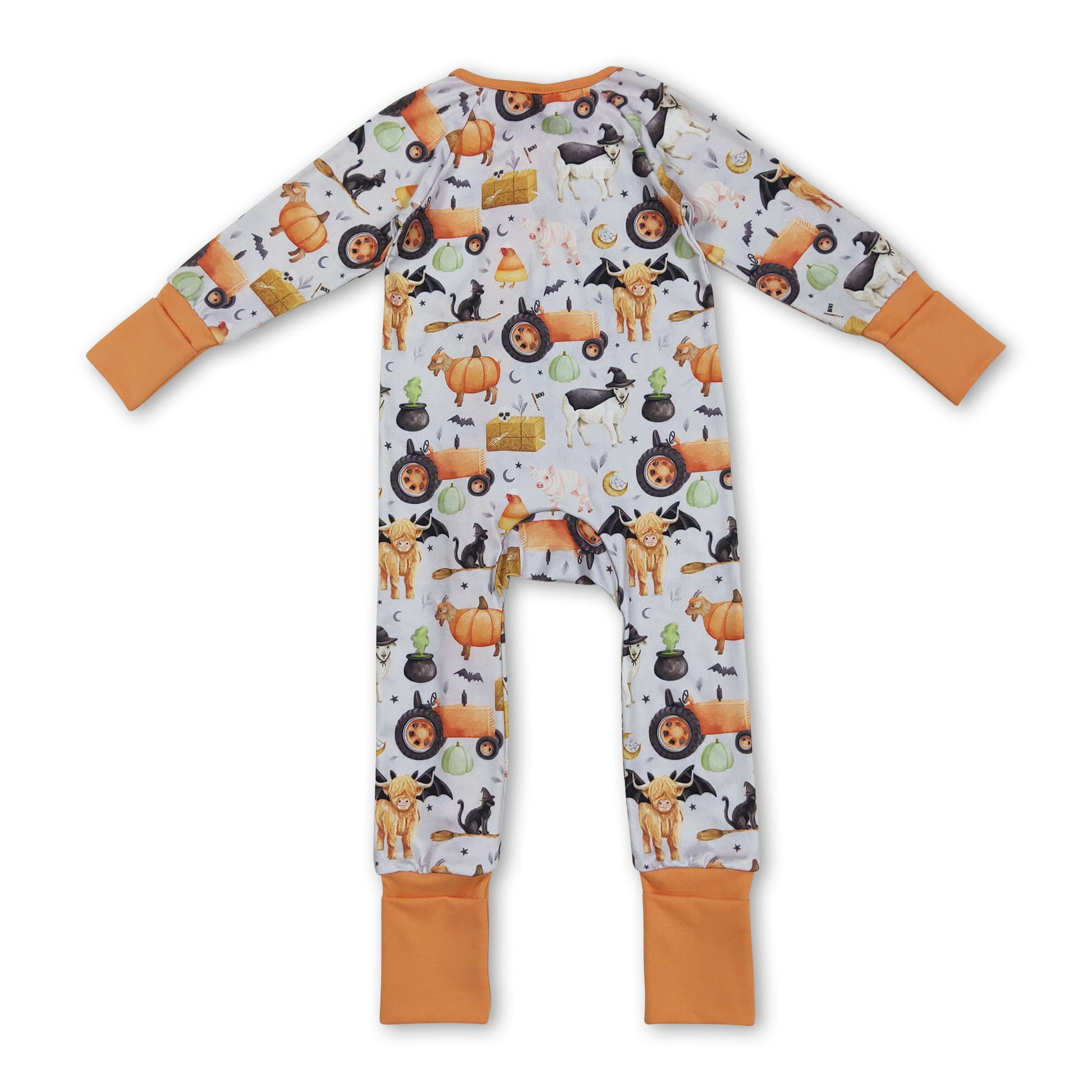 Cow pumpkin bat tractor farm baby boy Halloween zip romper ship from US