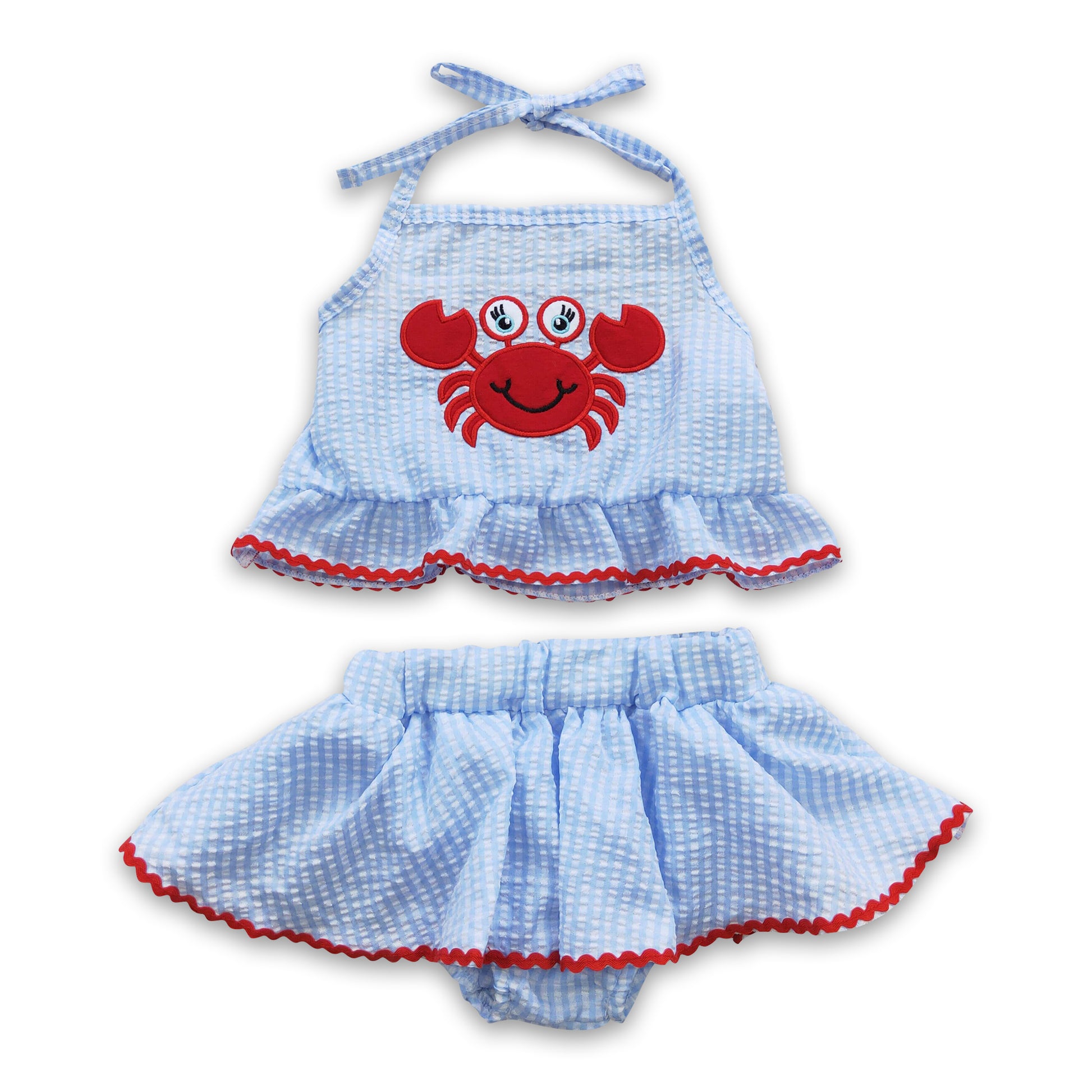 Crab seesucker baby girls bummies set