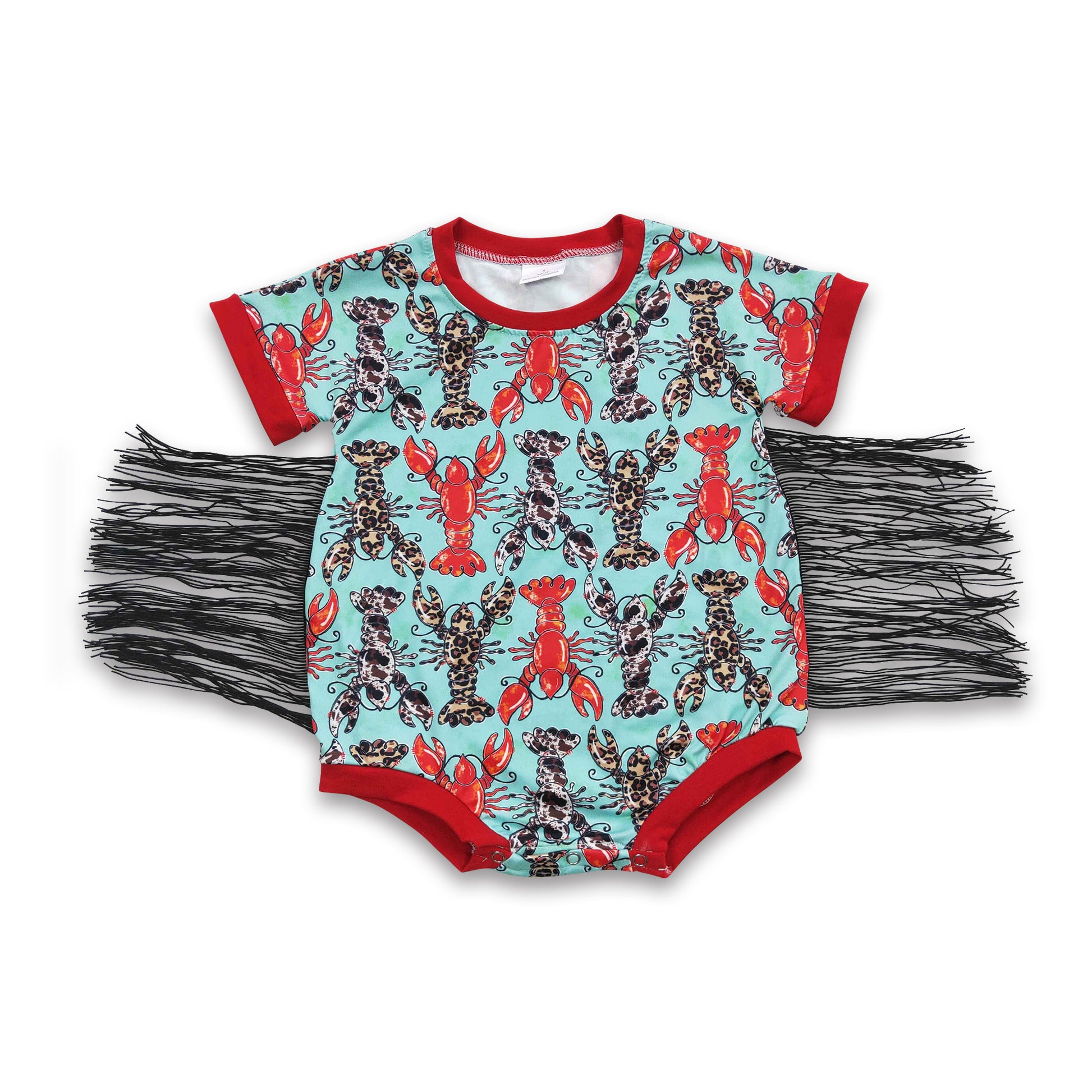 Crawfish short sleeves fringe baby girls romper