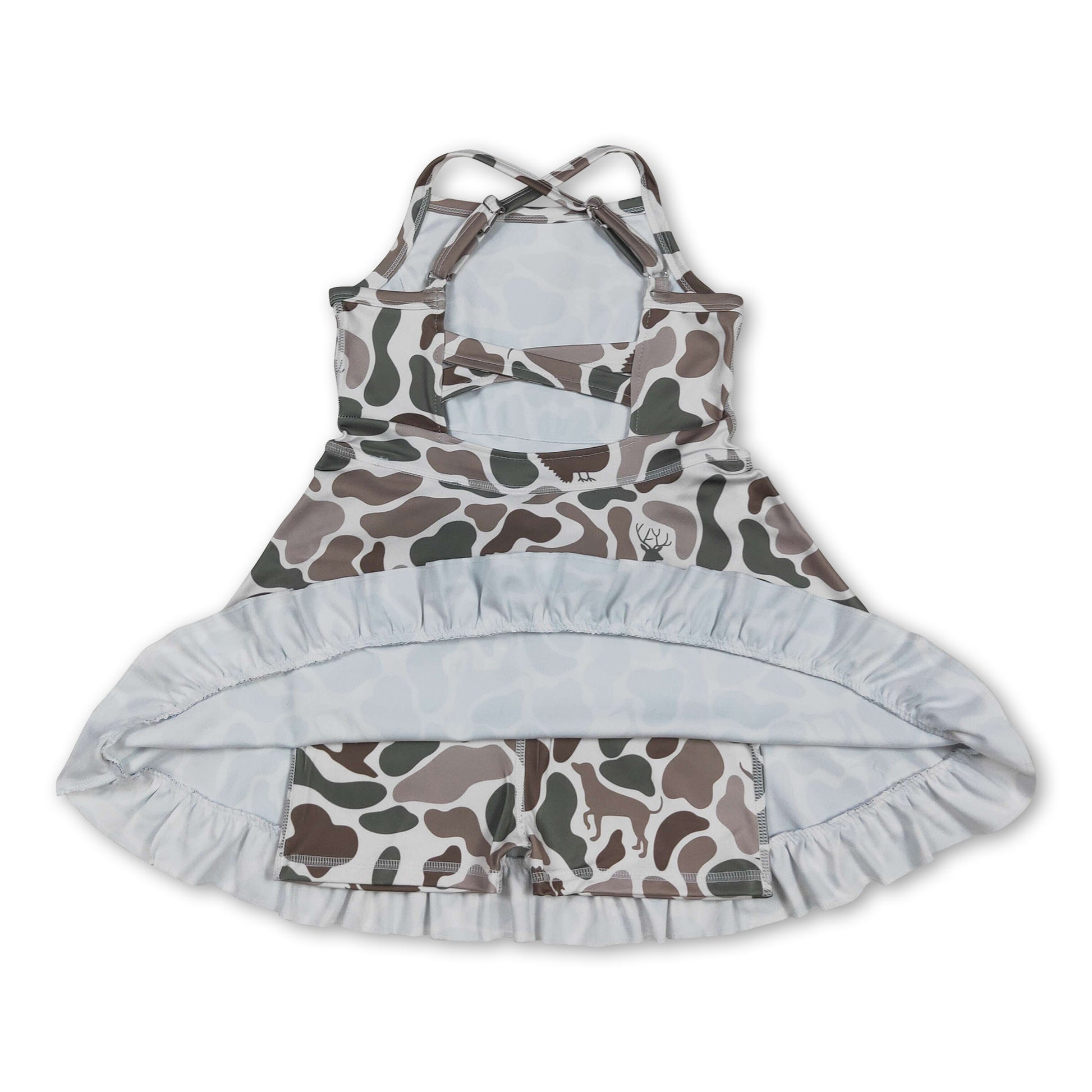 Deer duck camo straps ruffle girls athletic dress