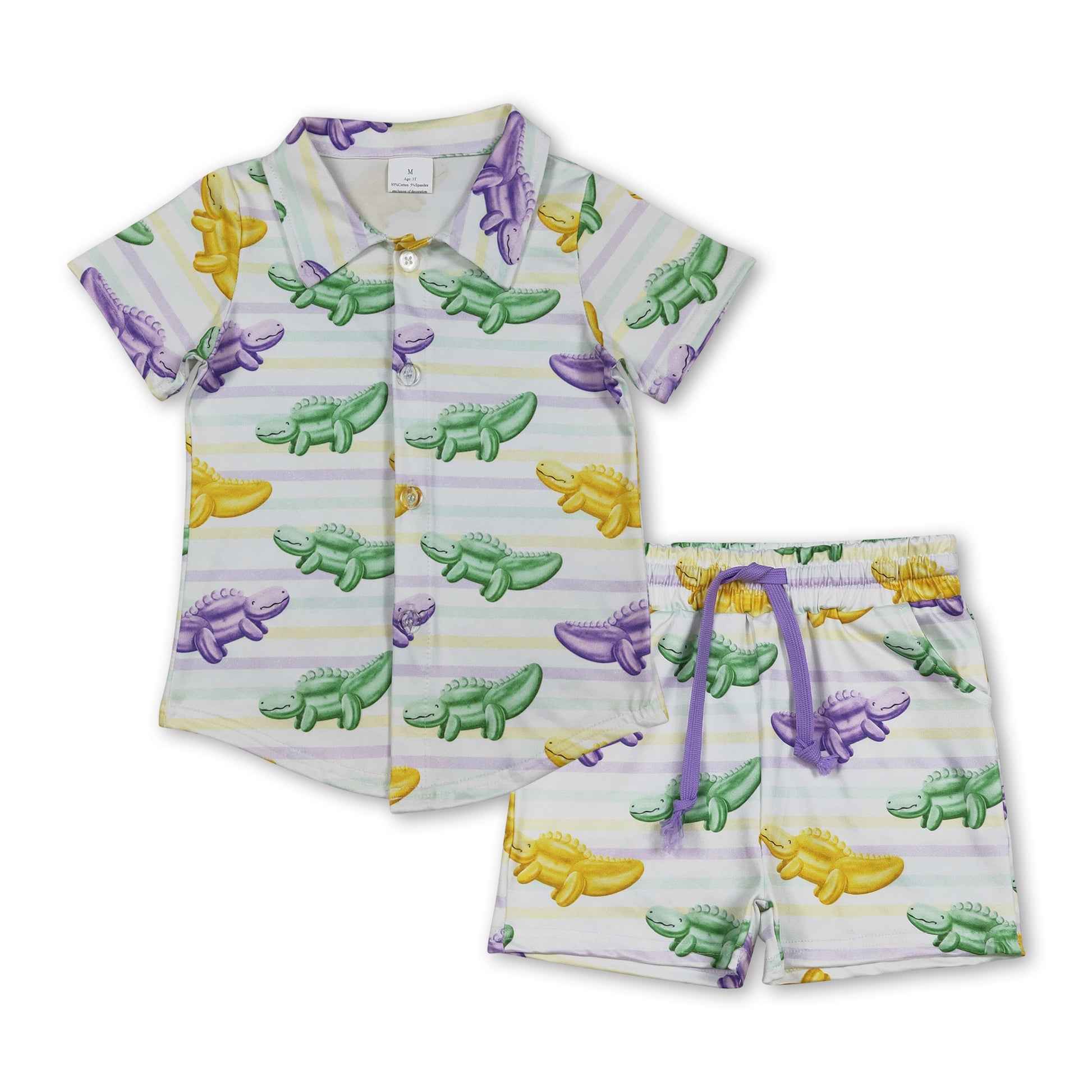Dinosaur button down shirt shorts boys Mardi Gras set