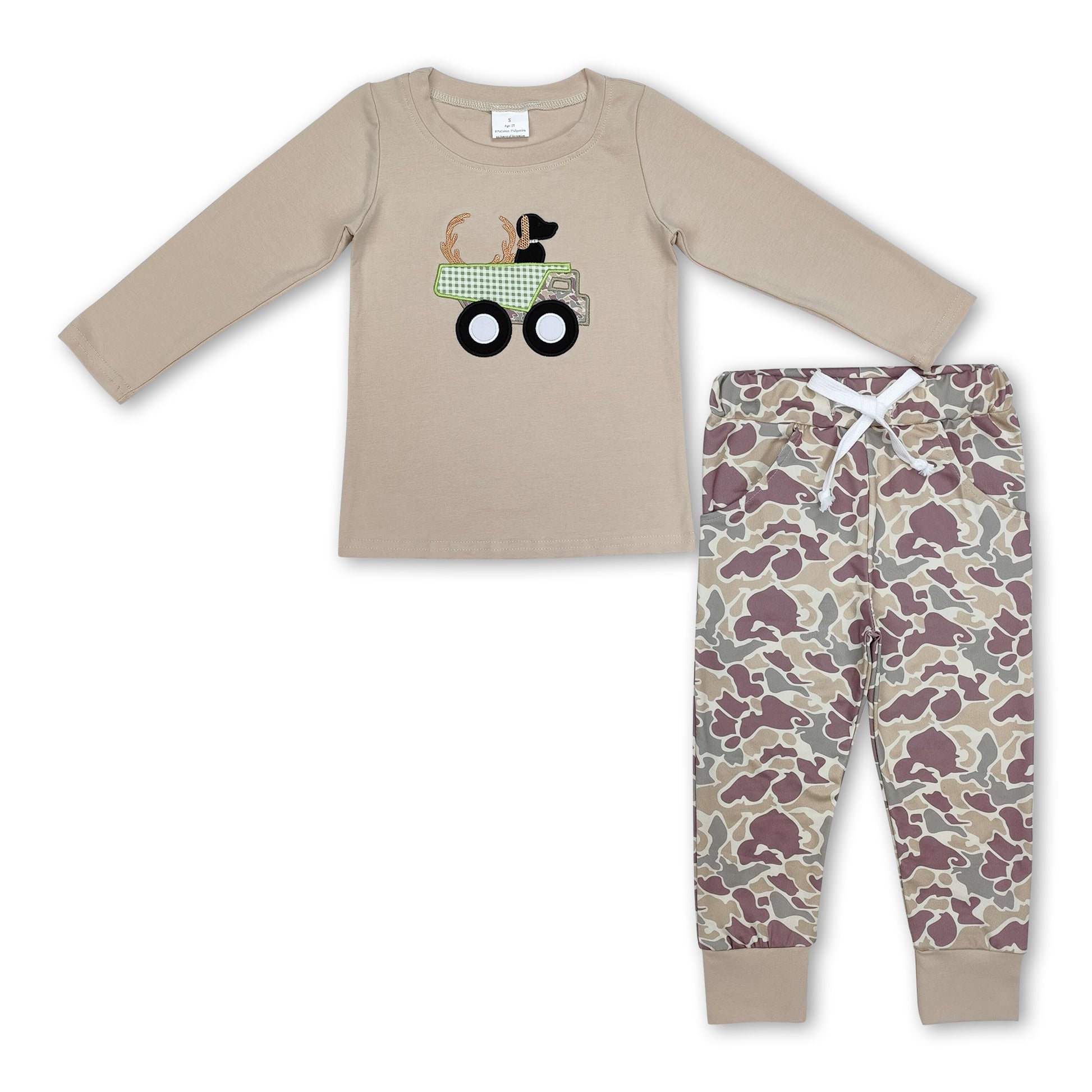 Dog deer truck top camo pants boys hunting clothes