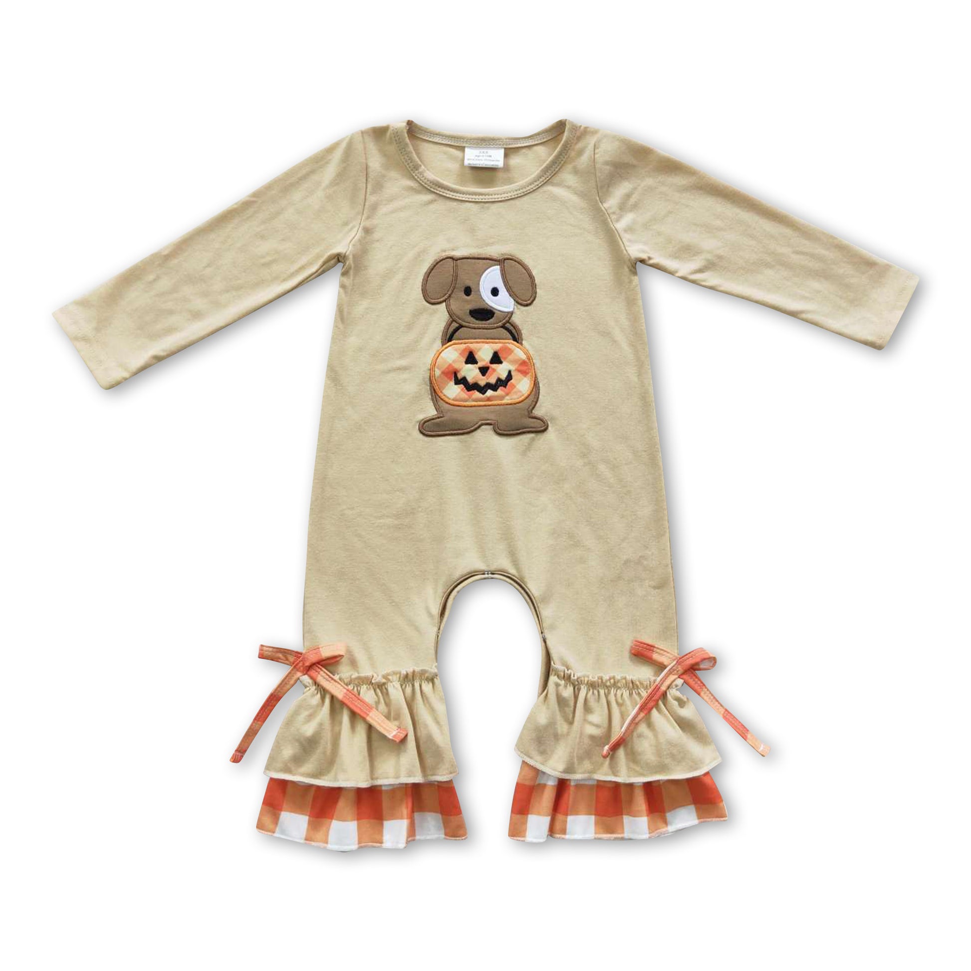 Dog pumpkin baby girls ruffle Halloween romper