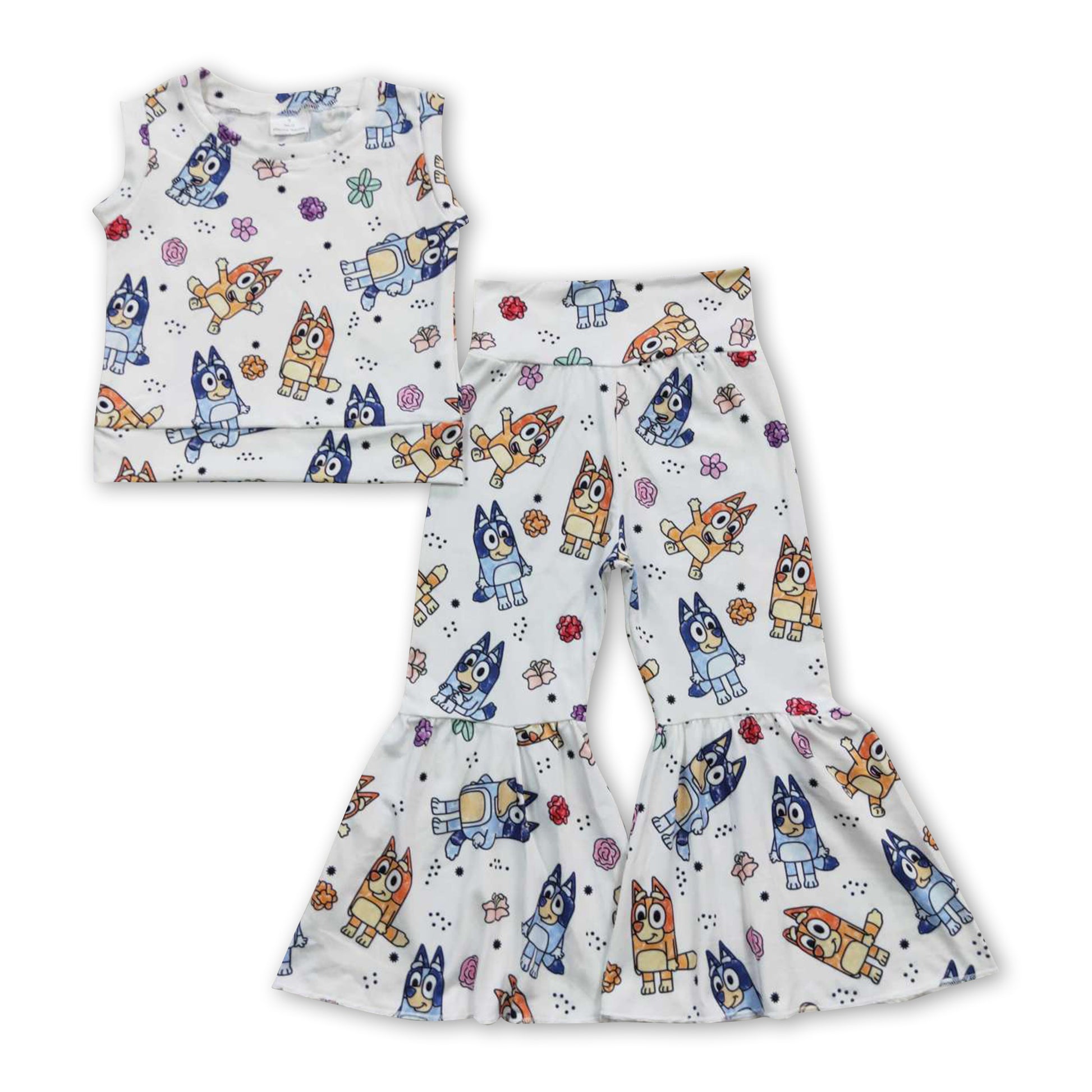 Dogs sleeveless top pants kids girls clothing set