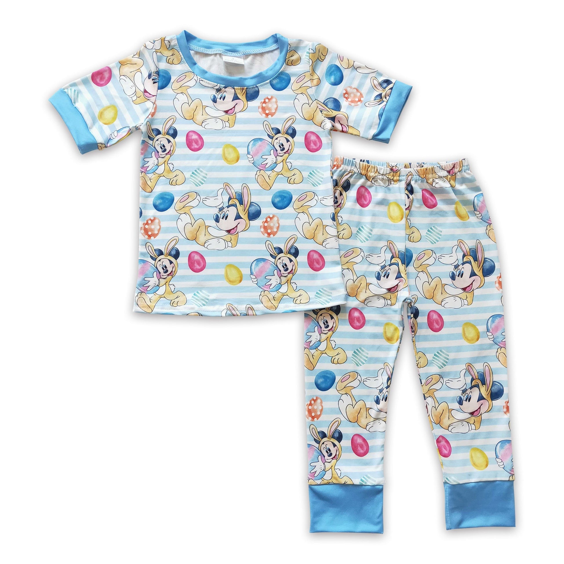 Eggs stripe mouse short sleeves kids boy easter pajamas