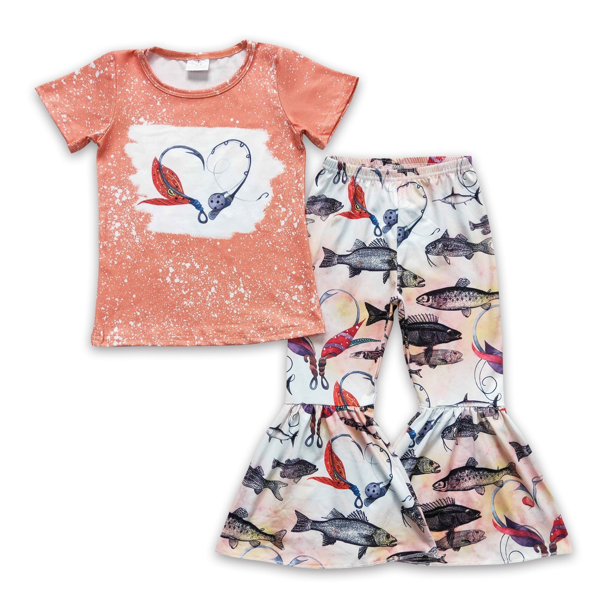 Fish heart shirt bell bottom pants girls clothes
