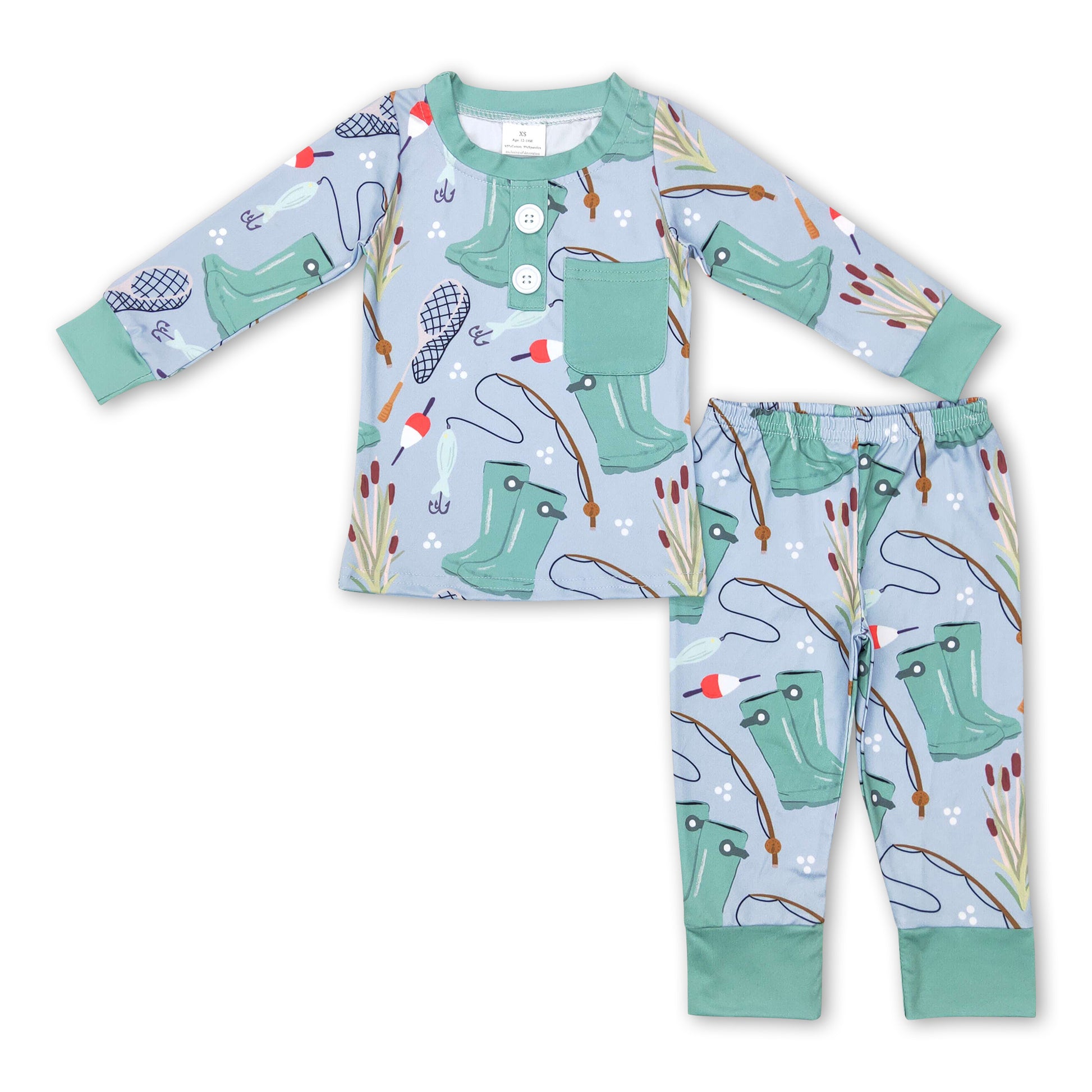 Fishing pocket long sleeves kids boy pajamas