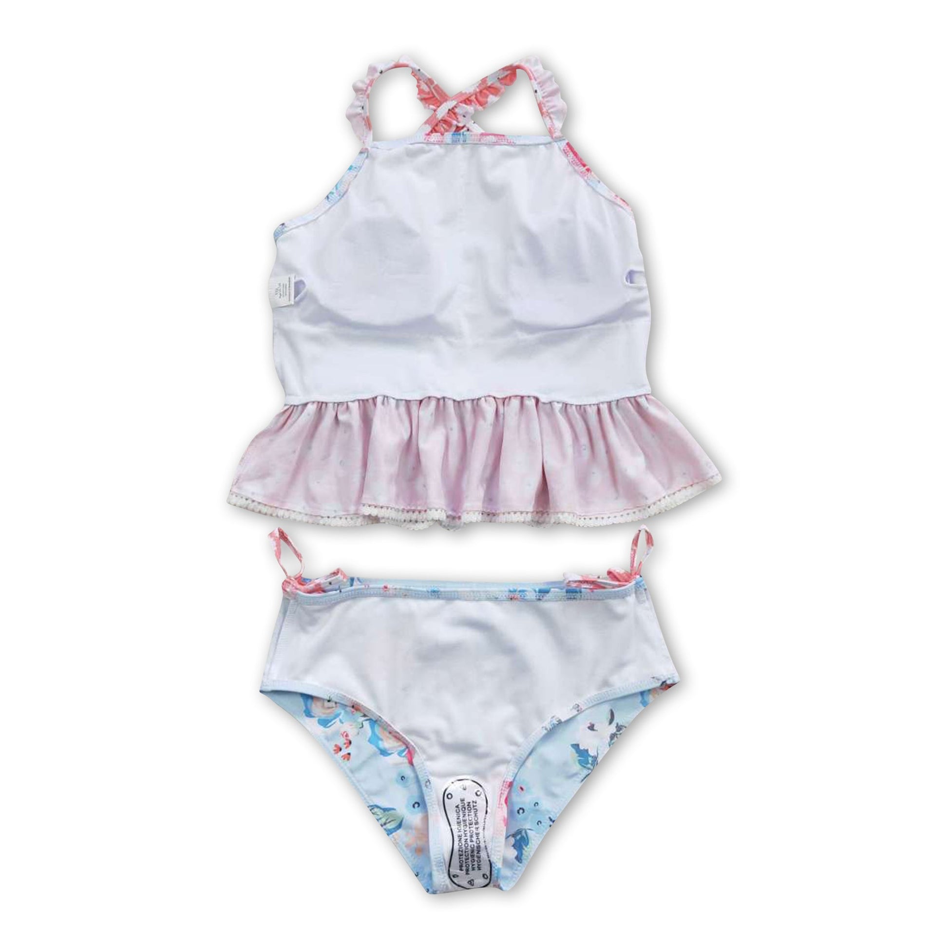 Floral peach ruffle 2 pcs baby girls summer swimsuit