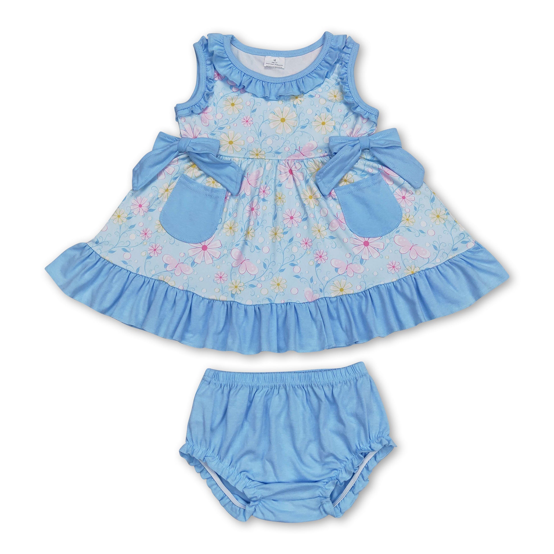Floral pockets tunic bummies baby girls summer clothes