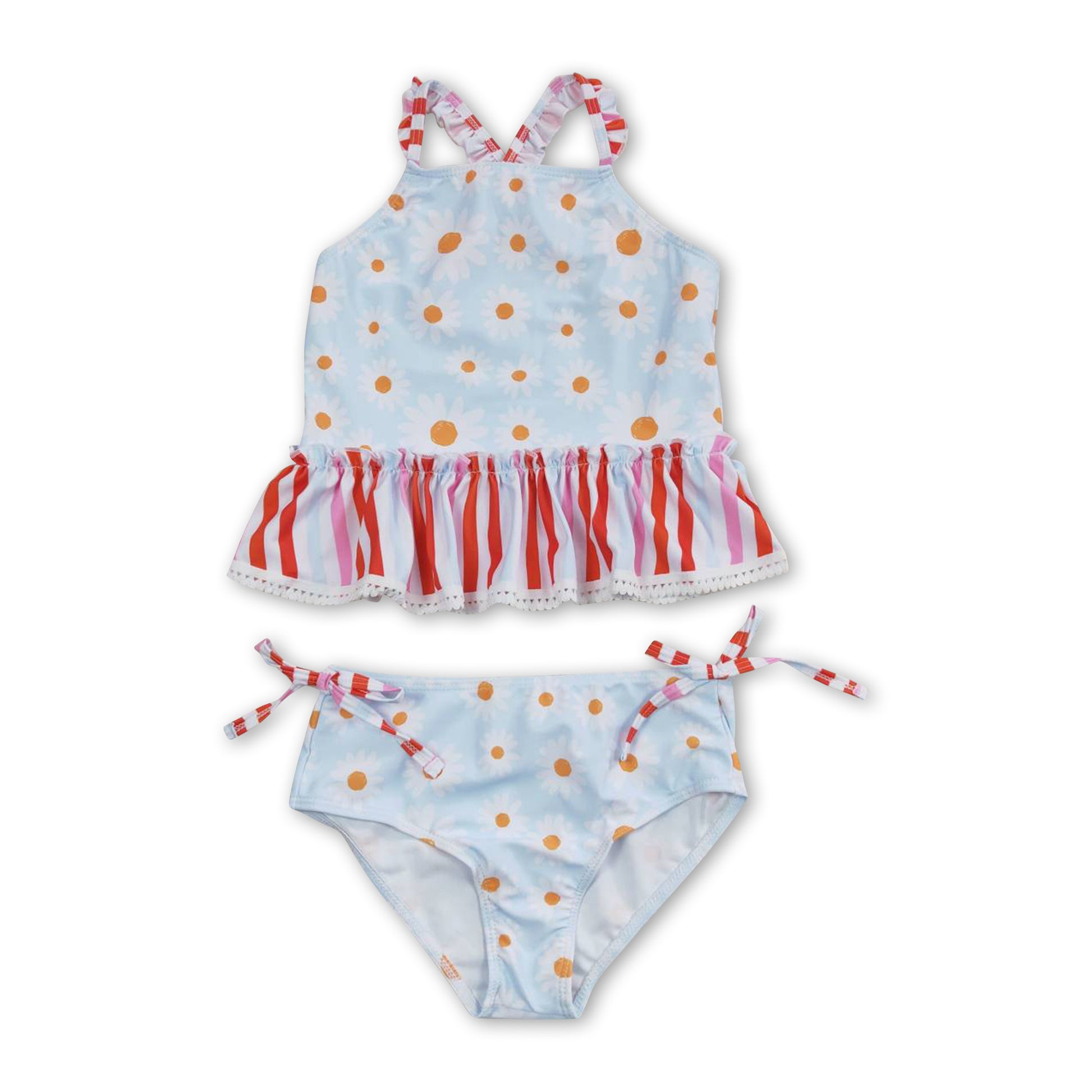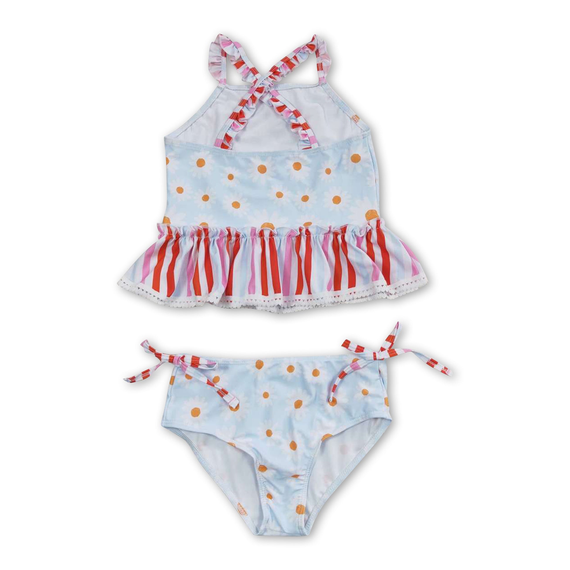 Daisy stripe ruffle 2 pcs baby girls summer swimsuit