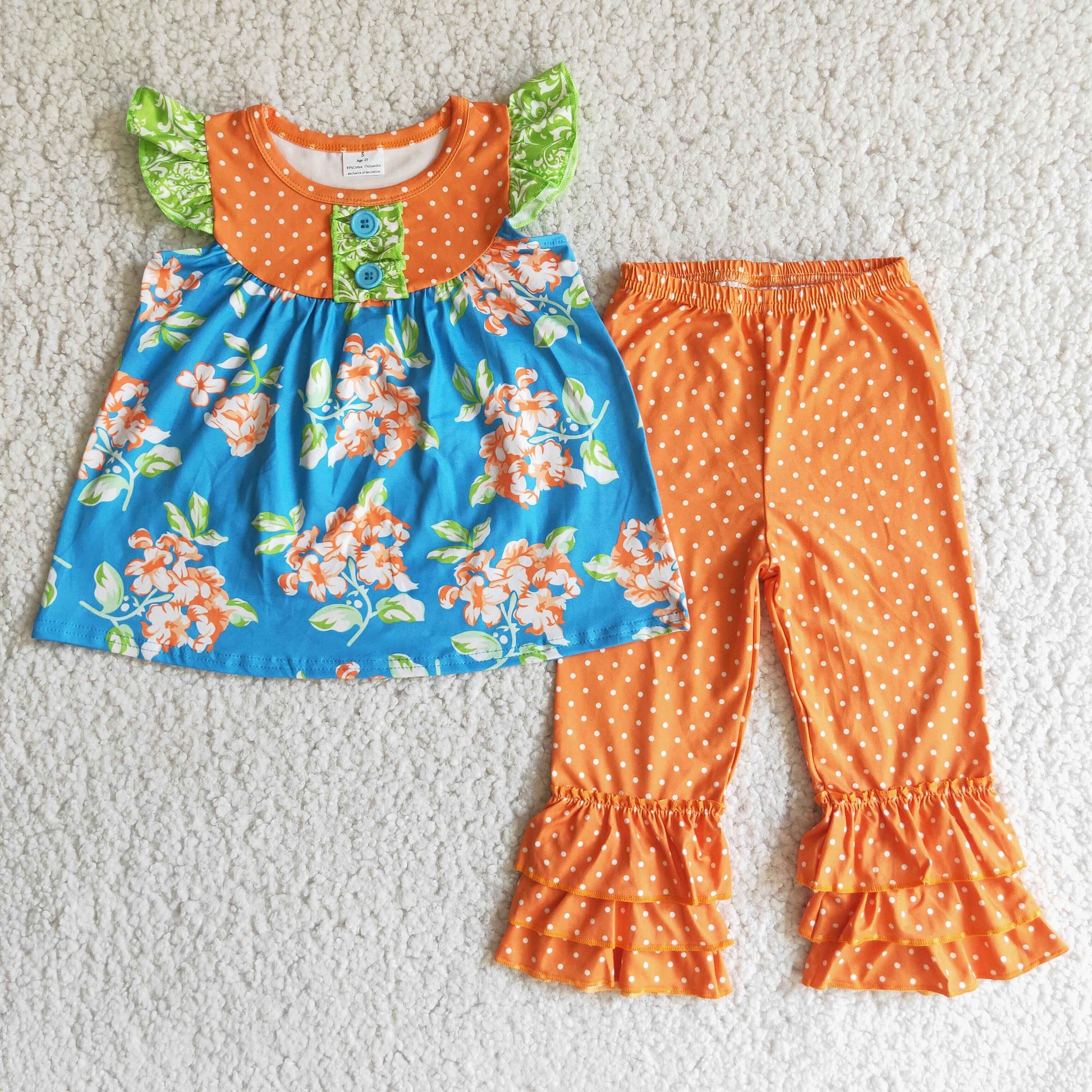 Flutter sleeve floral tunic orange pants girls fall clothing