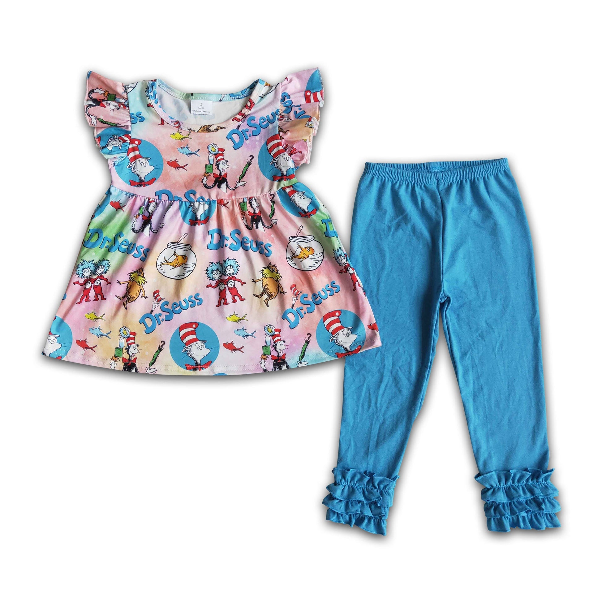 Flutter sleeve cat shirt blue icing ruffle pants girls boutique clothes