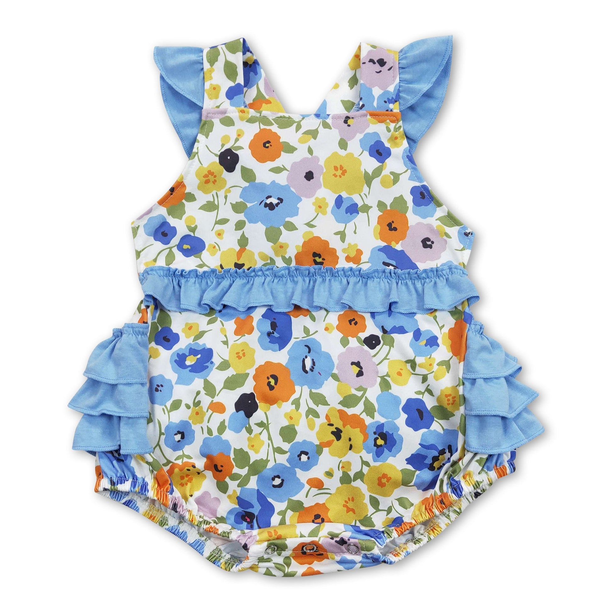Flutter sleeves blue floral baby girls summer romper