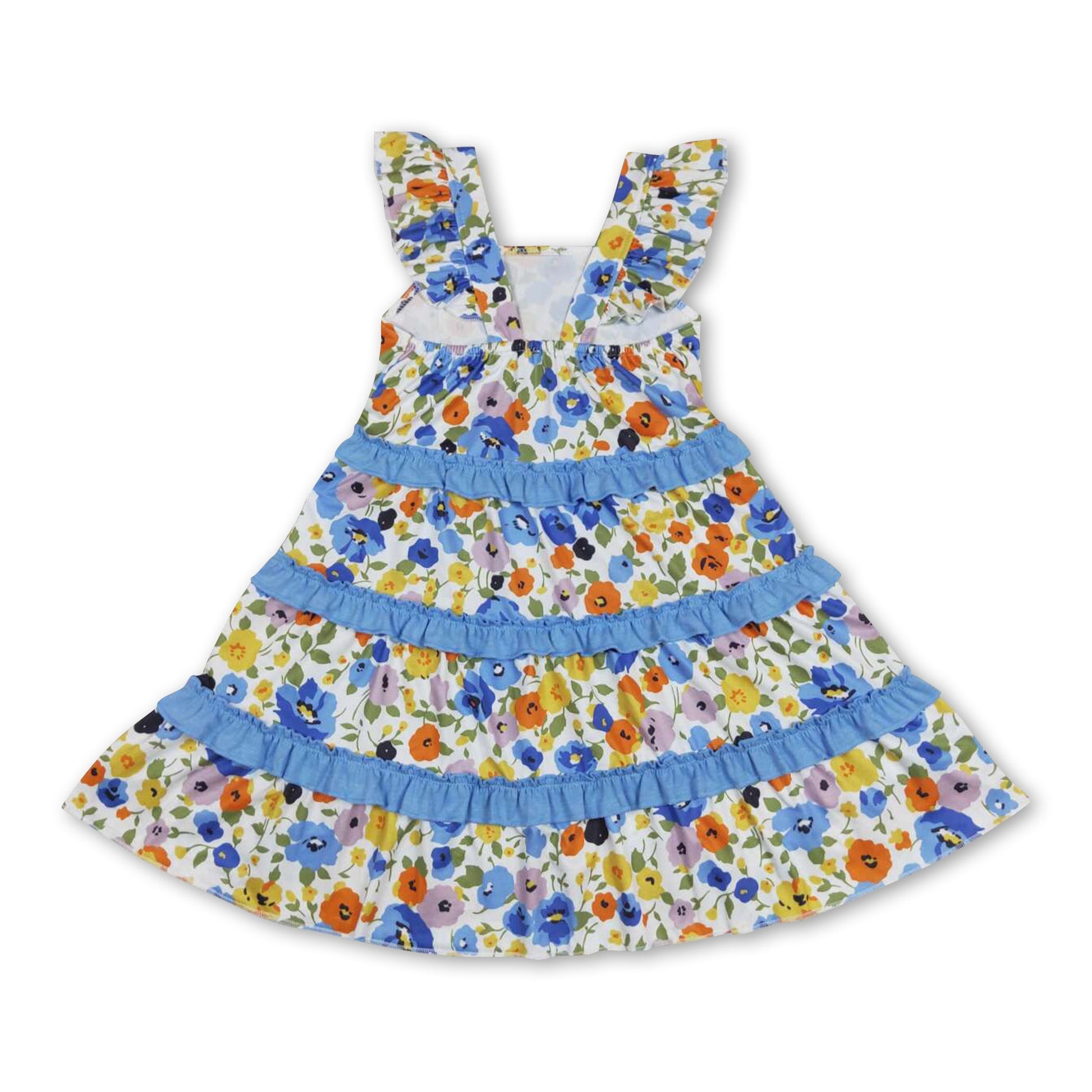 Flutter sleeves blue floral ruffle girls summer dresses