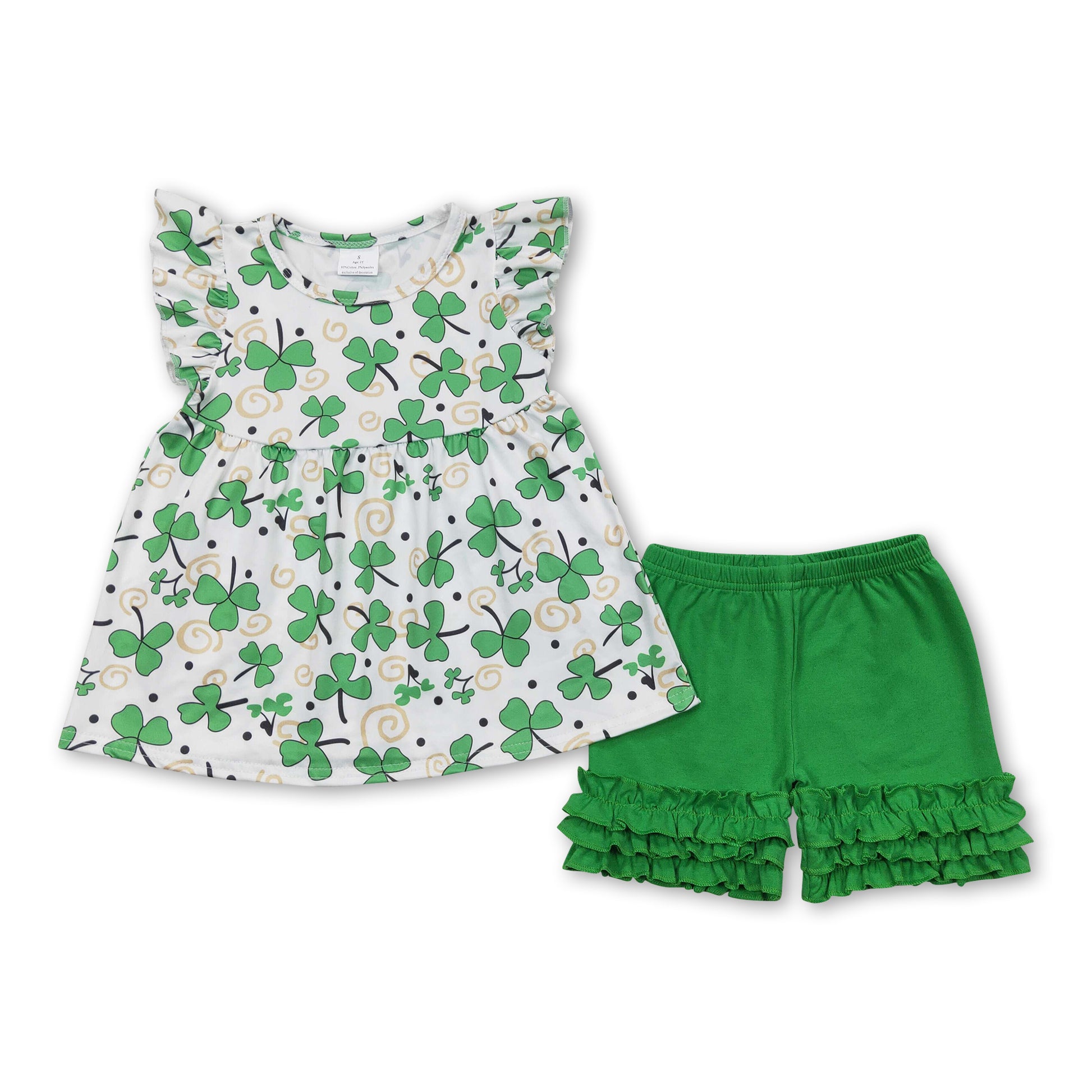 Flutter sleeves clover green shorts girls st patrick's outfits