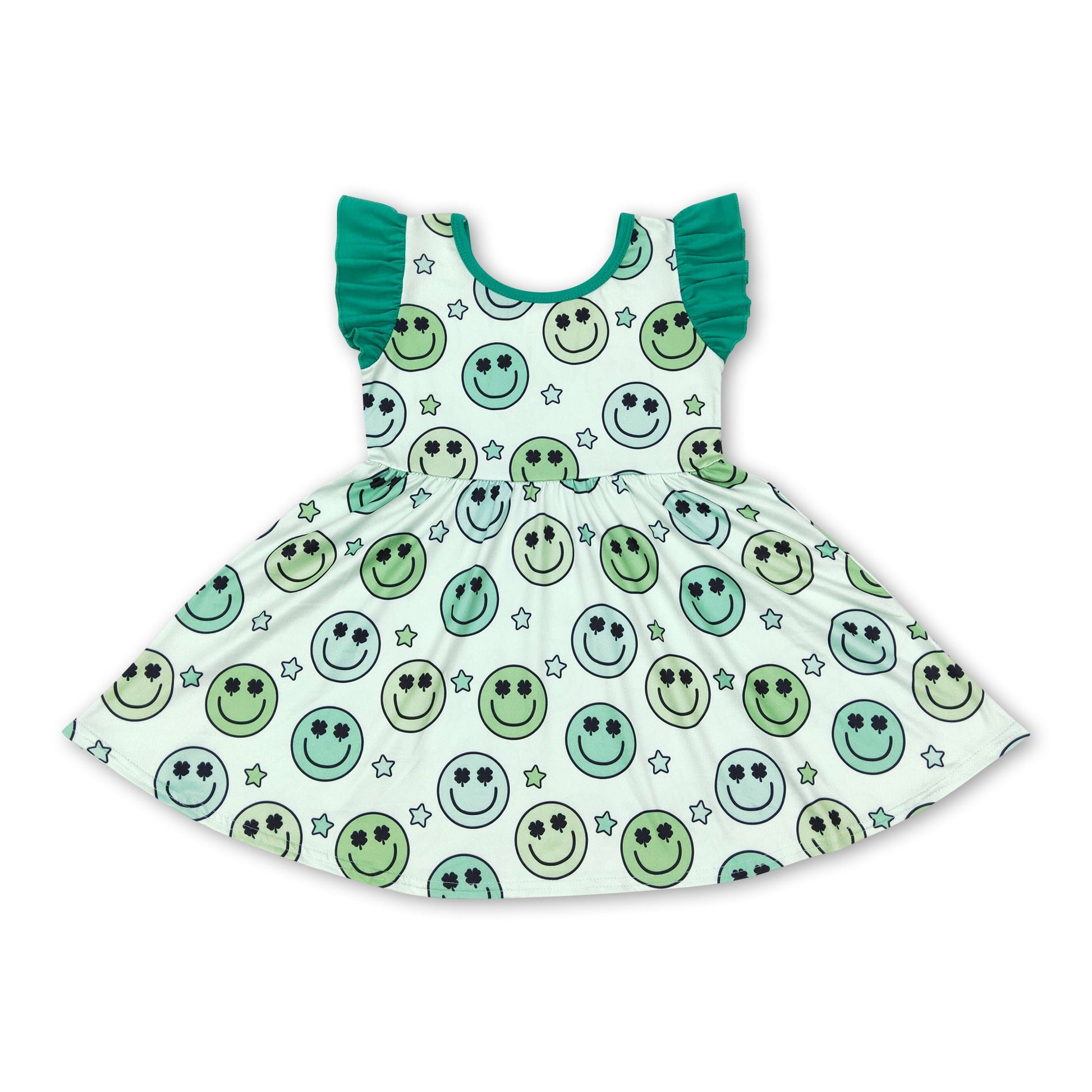 Flutter sleeves clover smile girls st patrick's day dresses