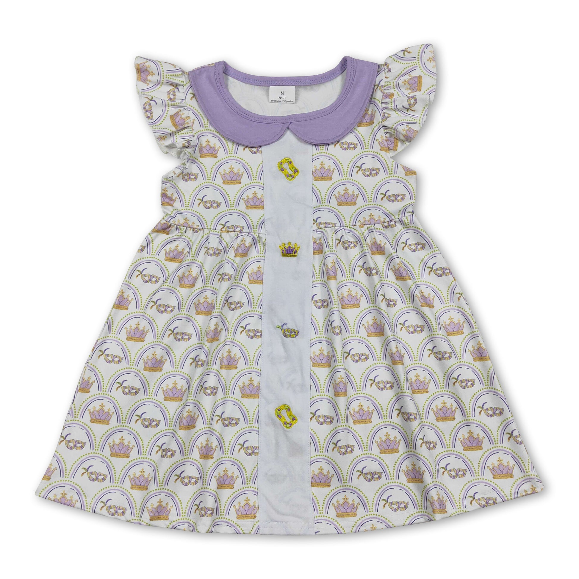 Flutter sleeves crown kids girls Mardi Gras dresses