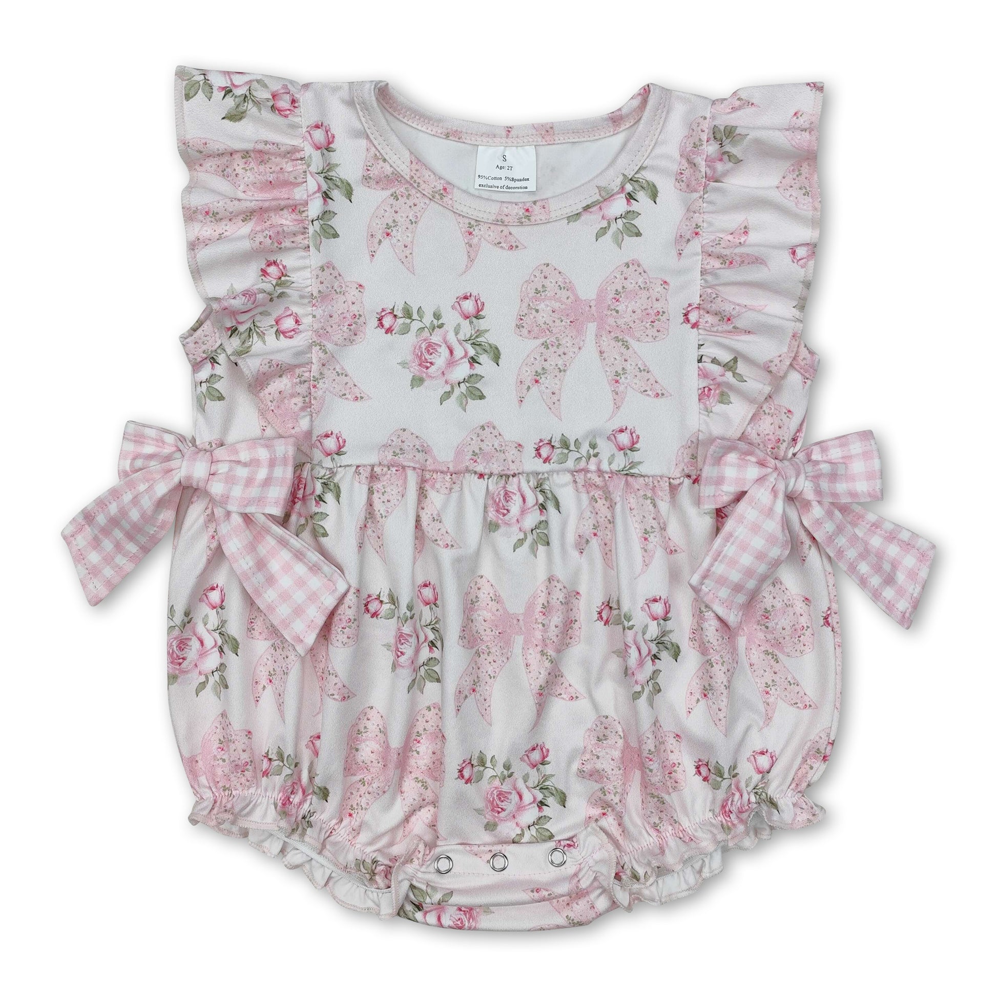 Flutter sleeves floral plaid bow baby girls romper
