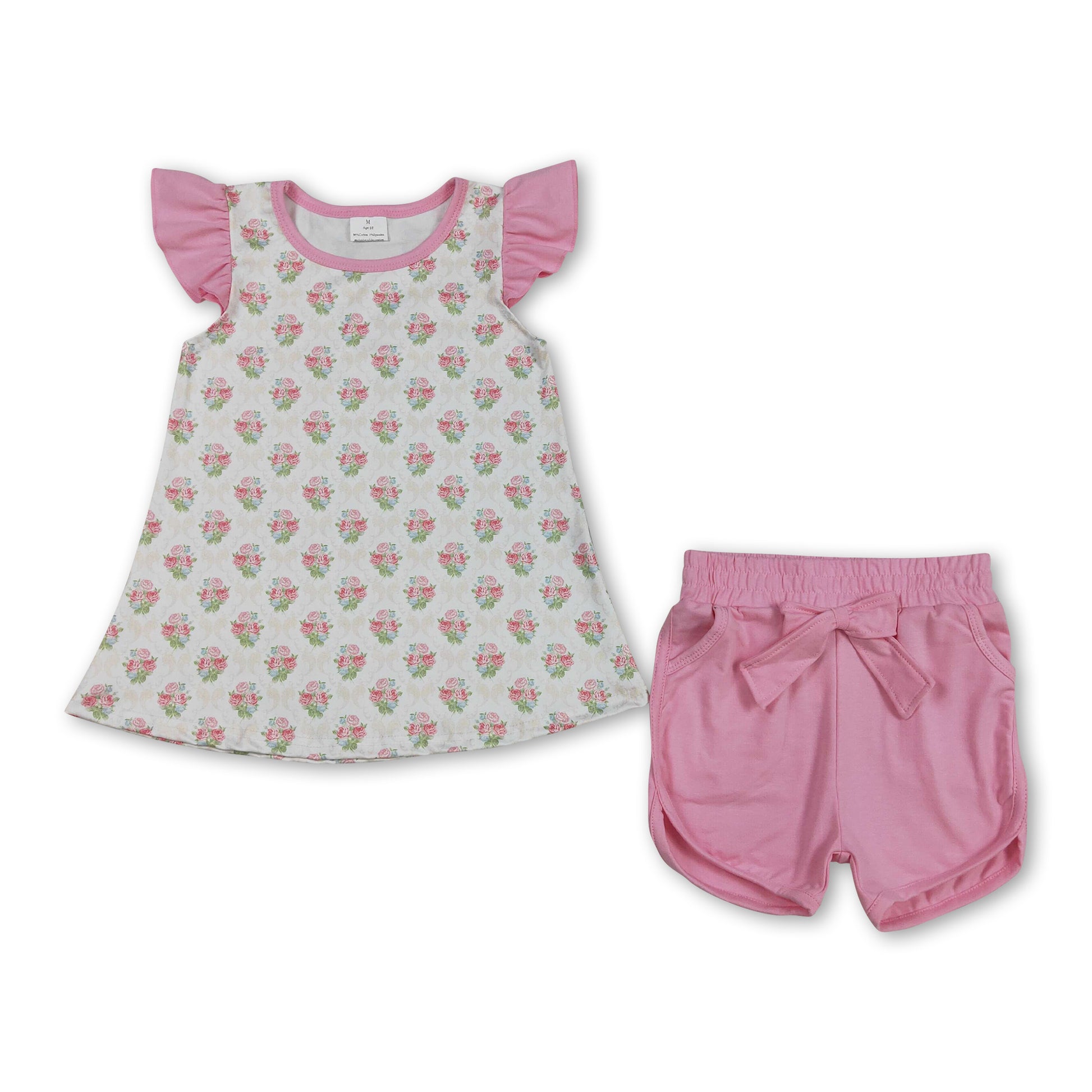 Flutter sleeves floral top pink cotton shorts girls outfits