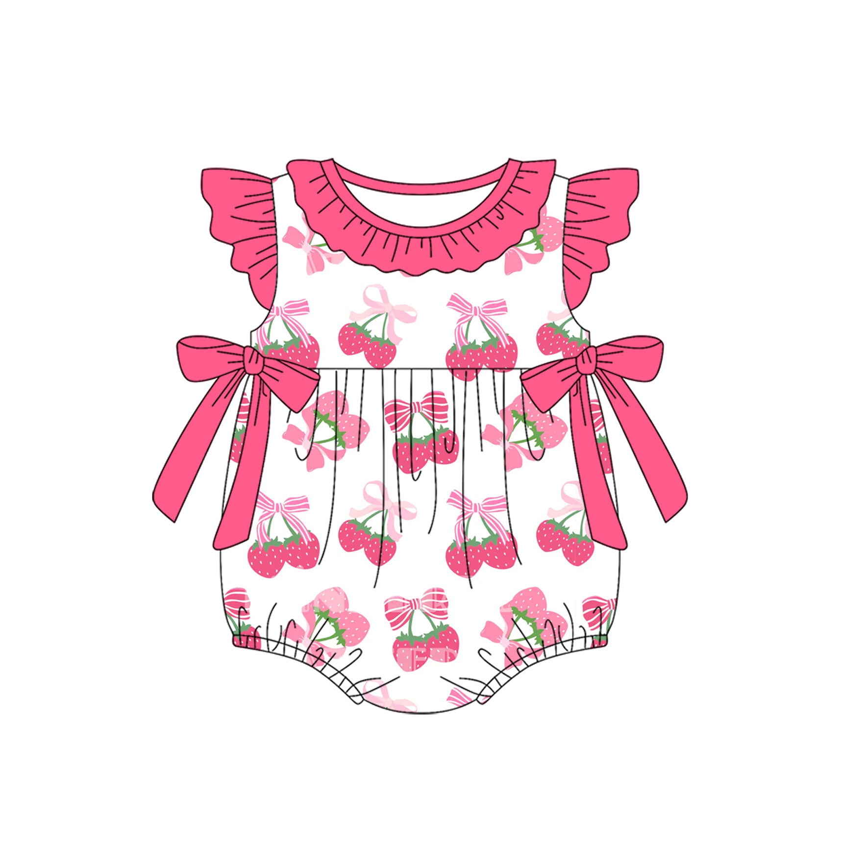 Flutter sleeves pink bow strawberry baby girls romper