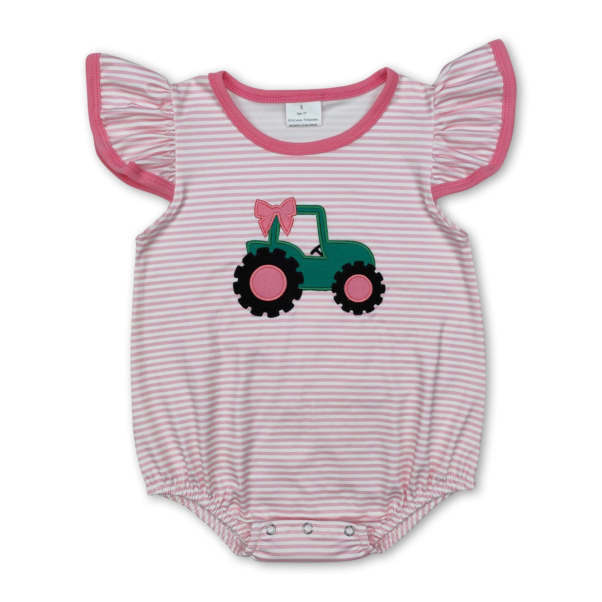Flutter sleeves pink stripe tractor baby girl romper ship from US