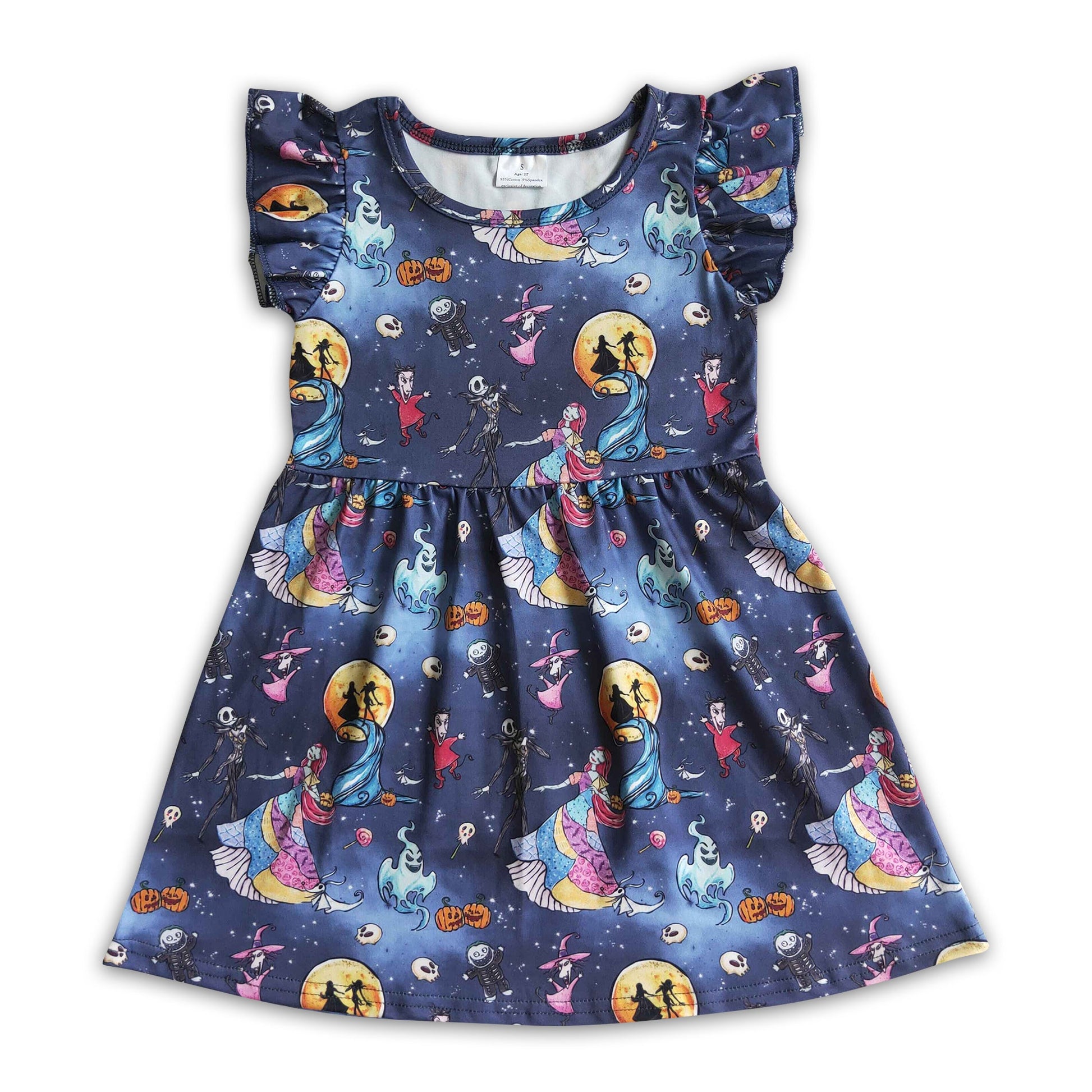 Flutter sleeves skull moon pumpkin ghost kids baby Halloween dresses