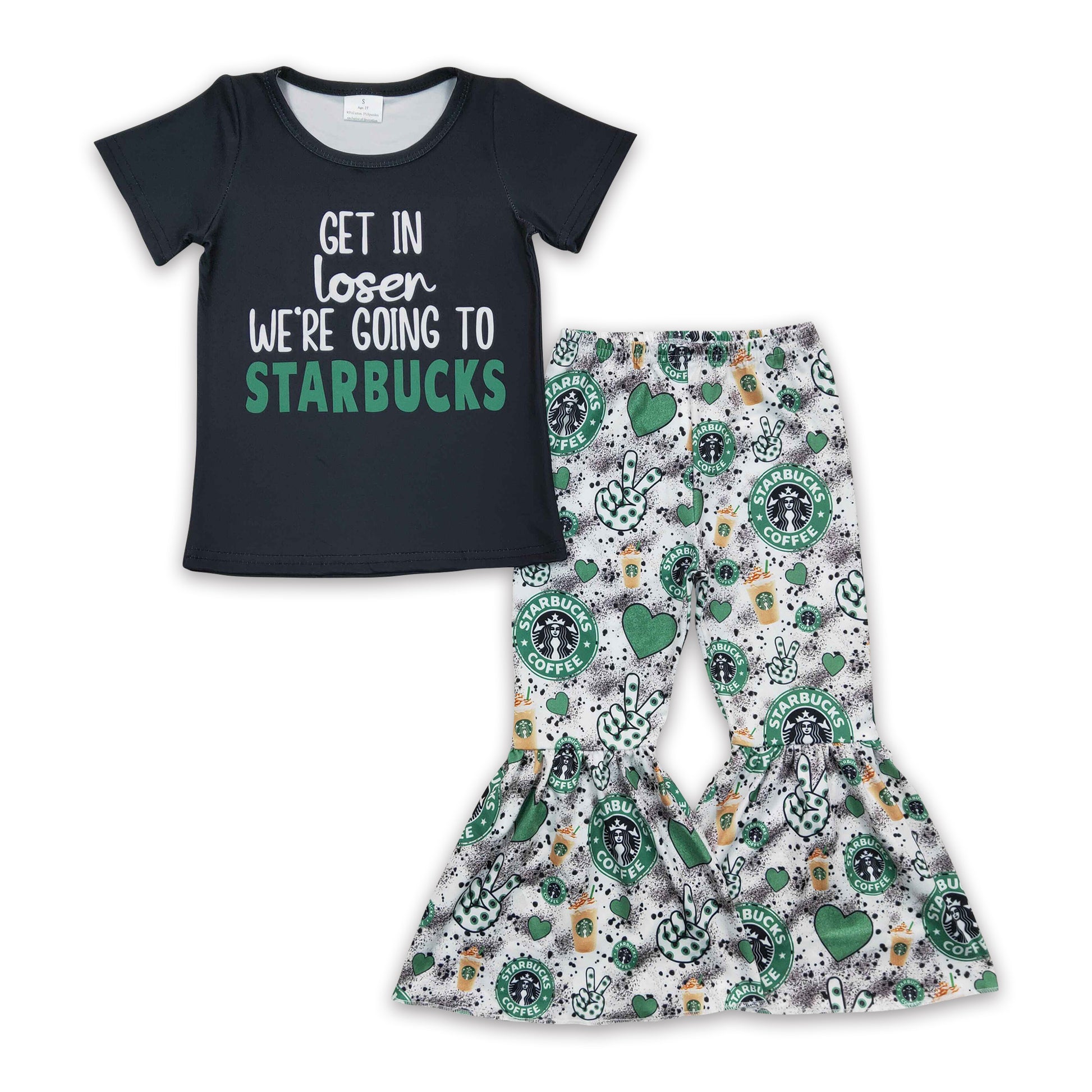 Get in coffee shirt match bell bottom pants girls clothing set