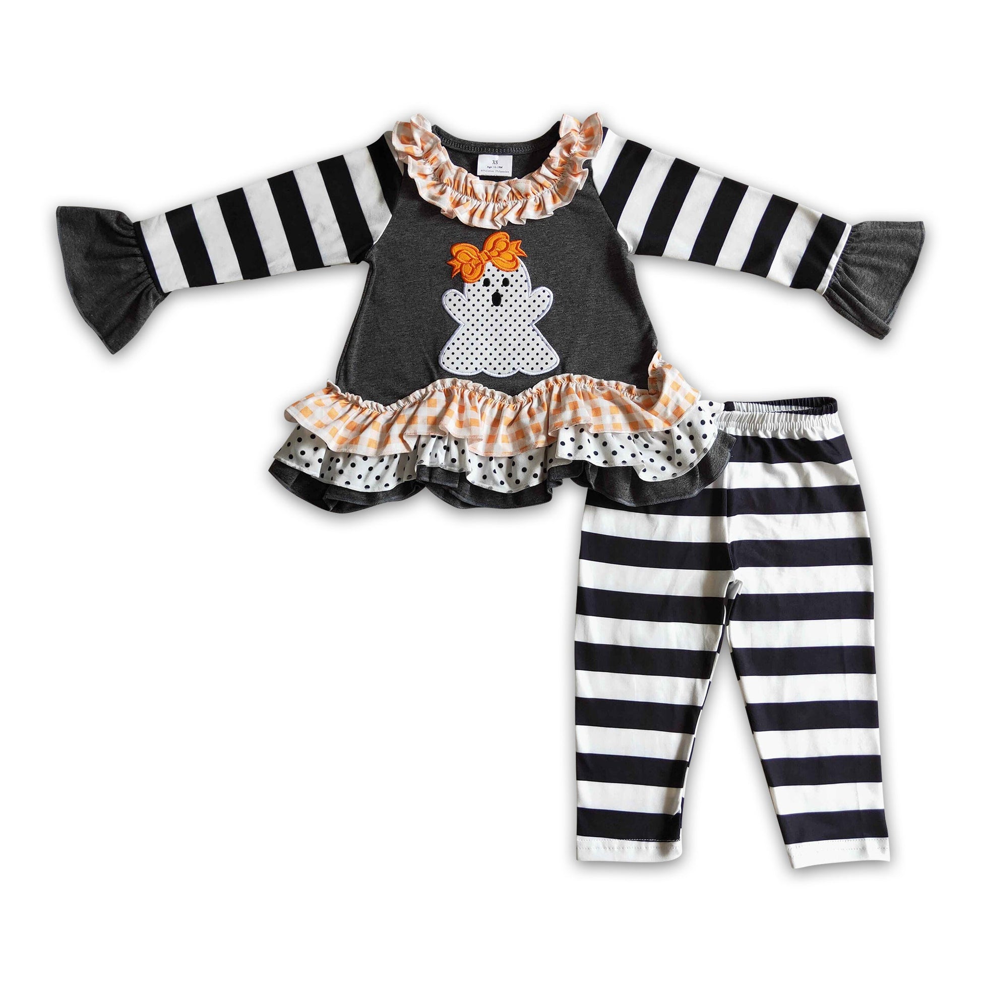 Ghost embroidery ruffle tunic leggings girls Halloween clothes