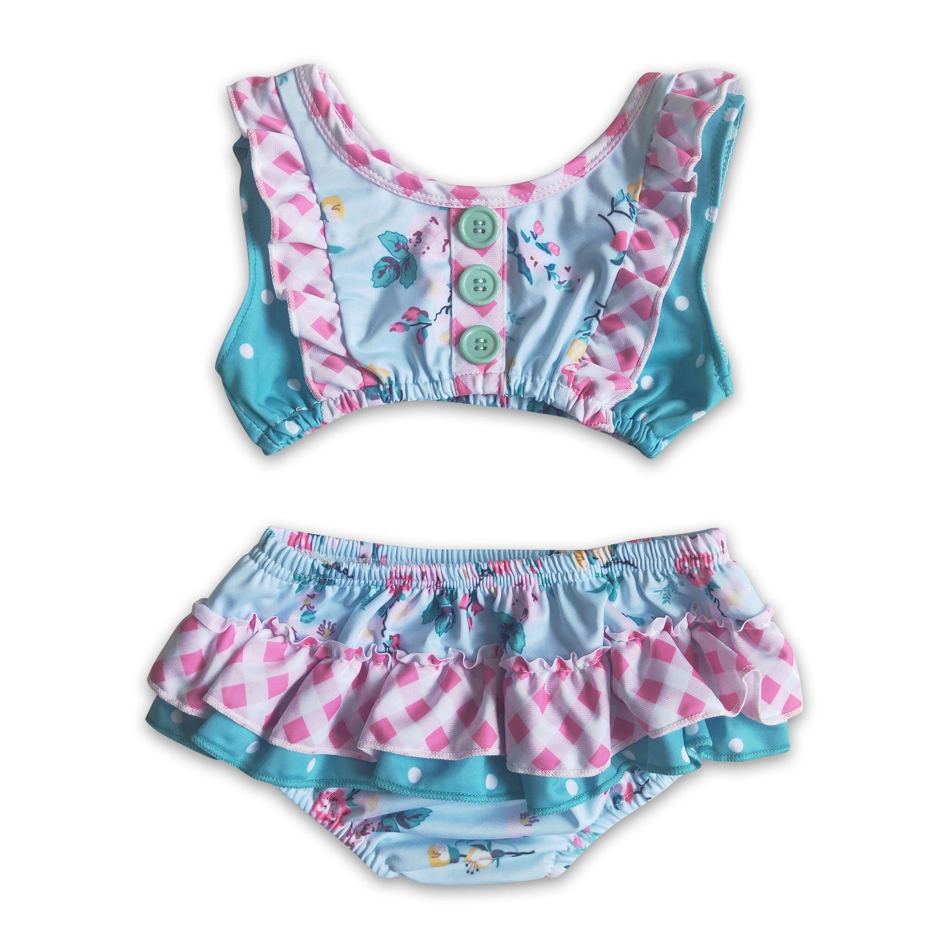 Girl Floral Plaid Swimsuit