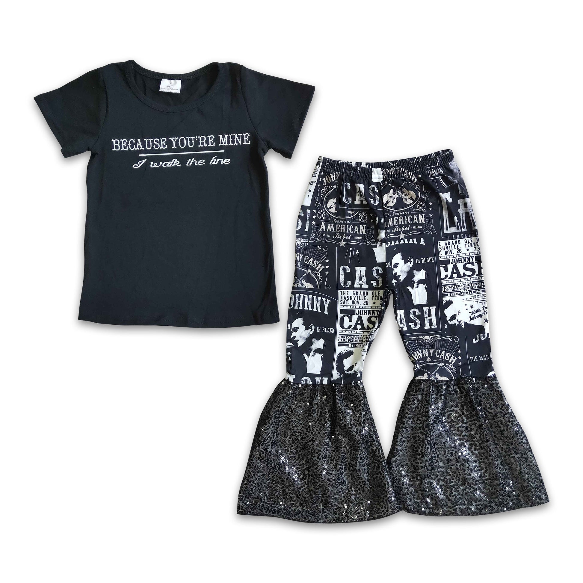 Girl Black Cotton Vinyl Shirt Sequin Pants Singer Outfit