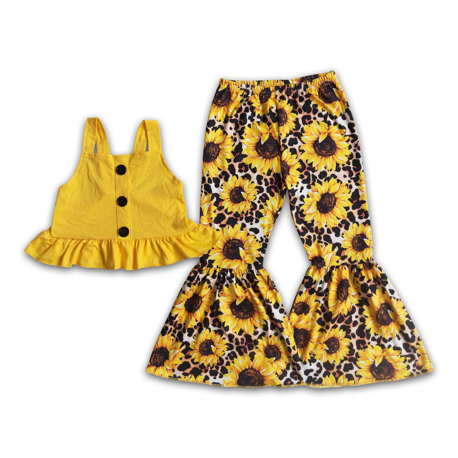 Girl Crop Top Sunflowers Sleeveless Outfit