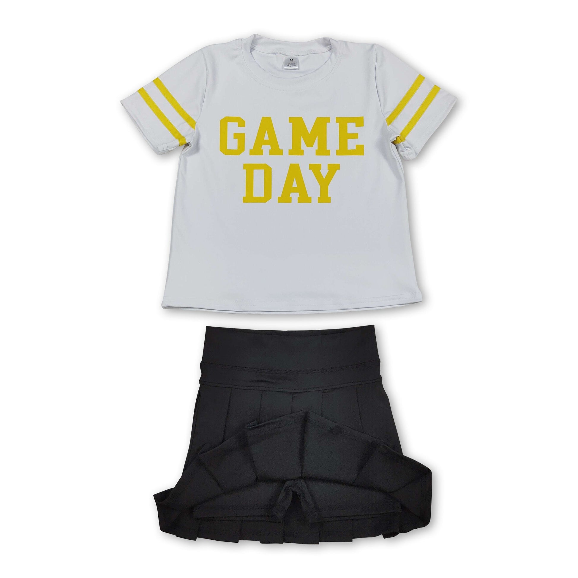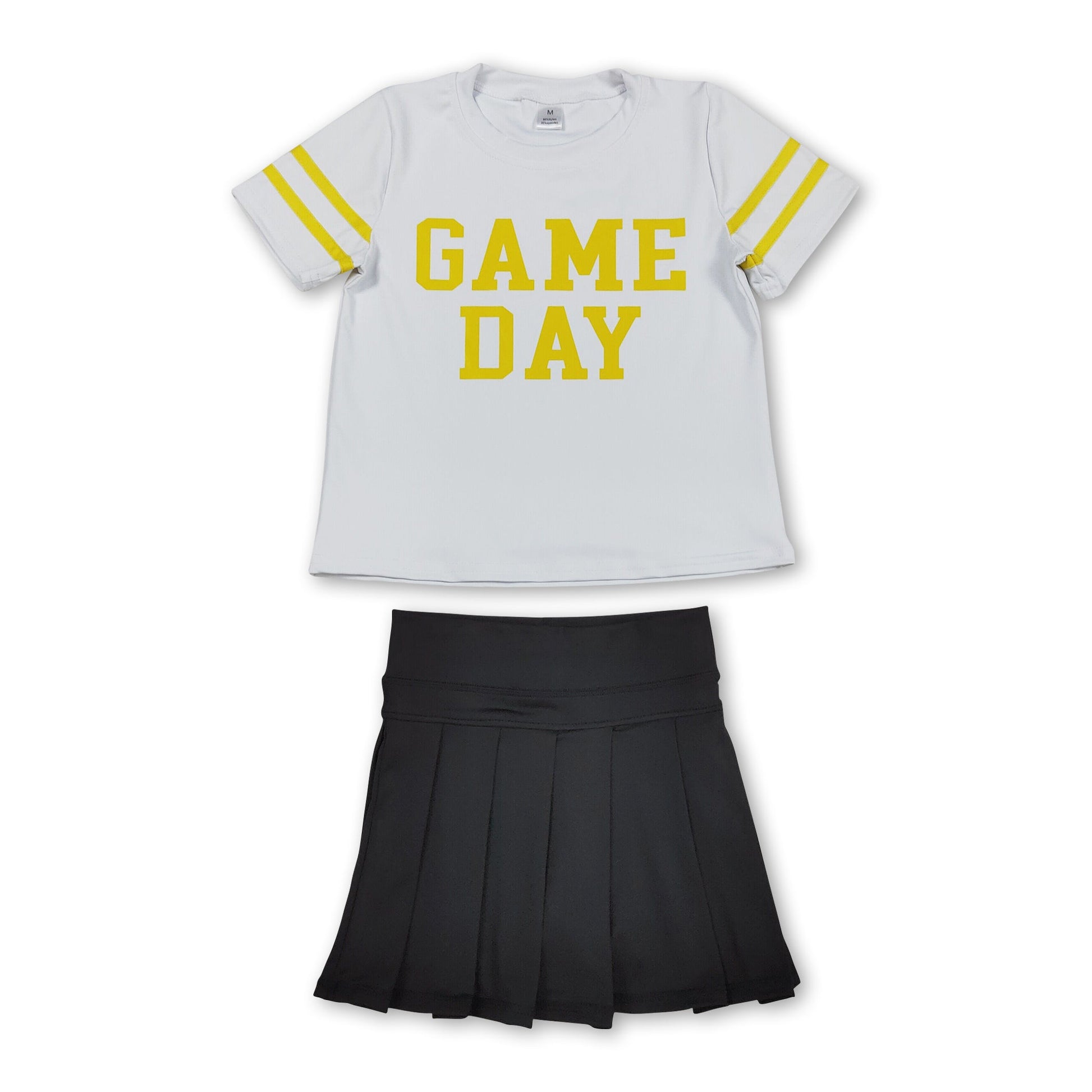 Yellow game day top black pleated skirt girls team clothes