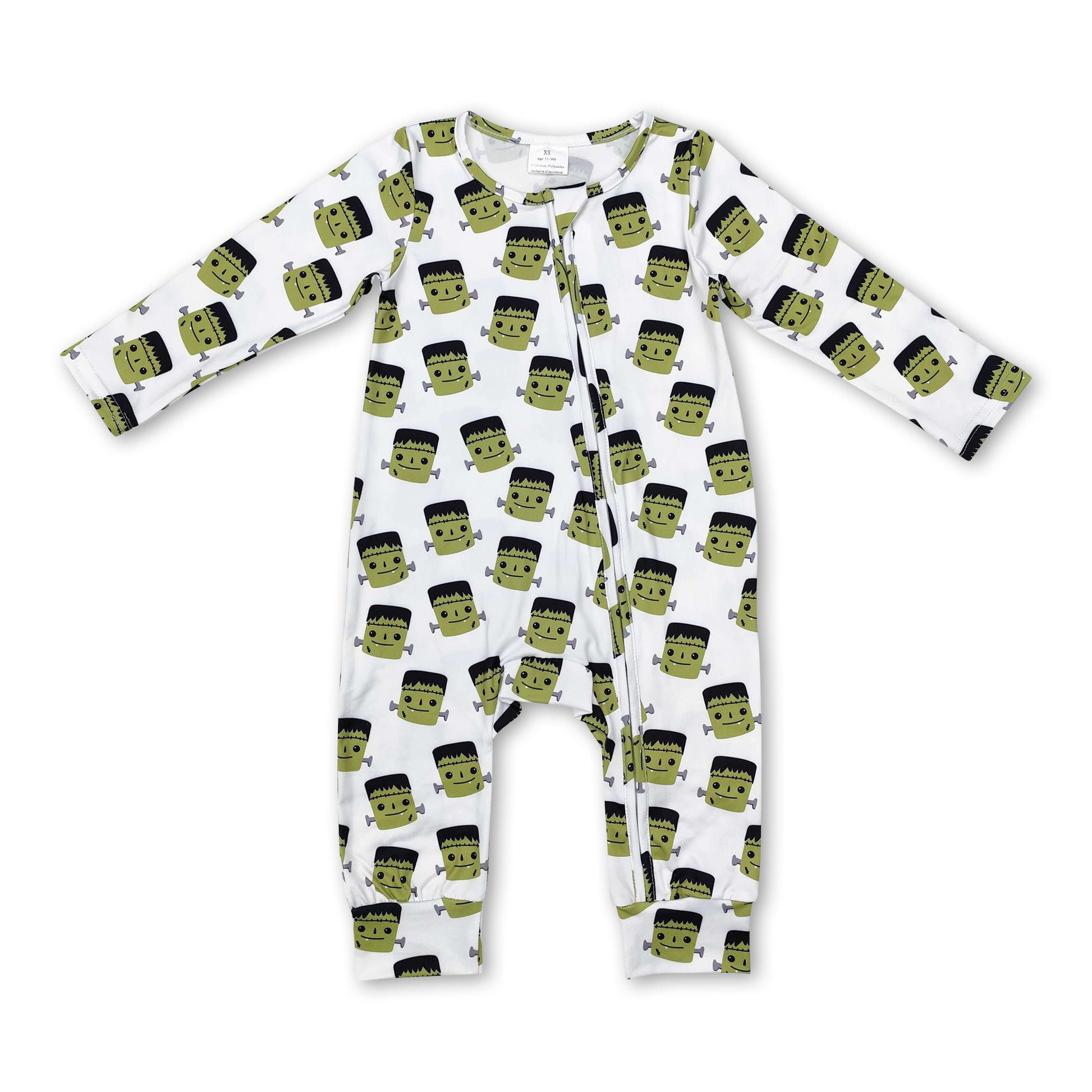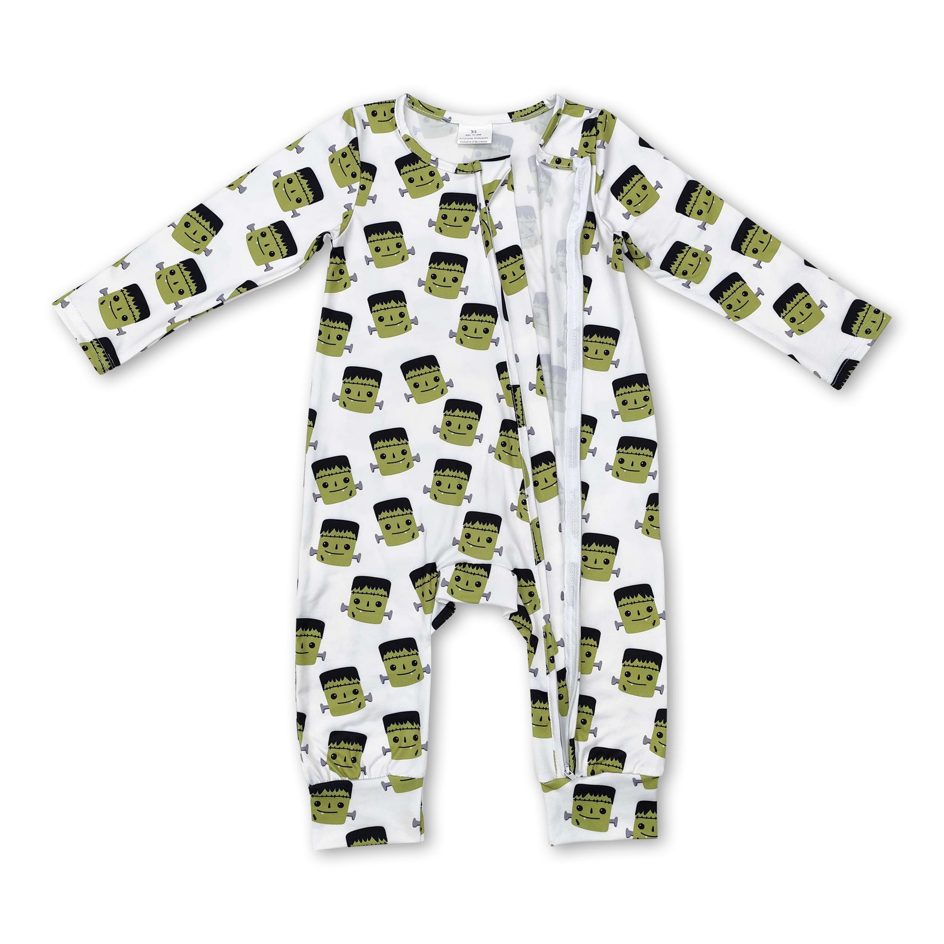 Green long sleeves baby Halloween zipper romper