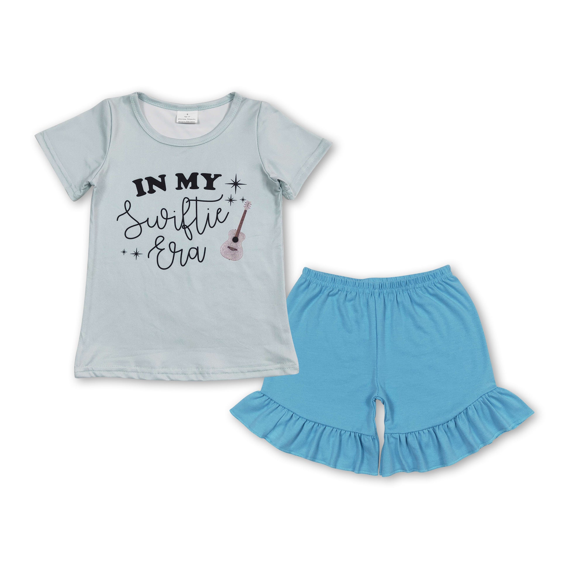 Guitar top blue ruffle shorts singer girls clothing